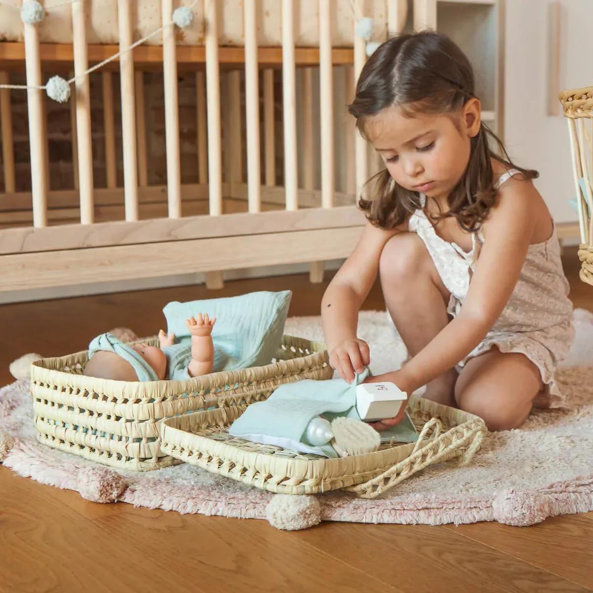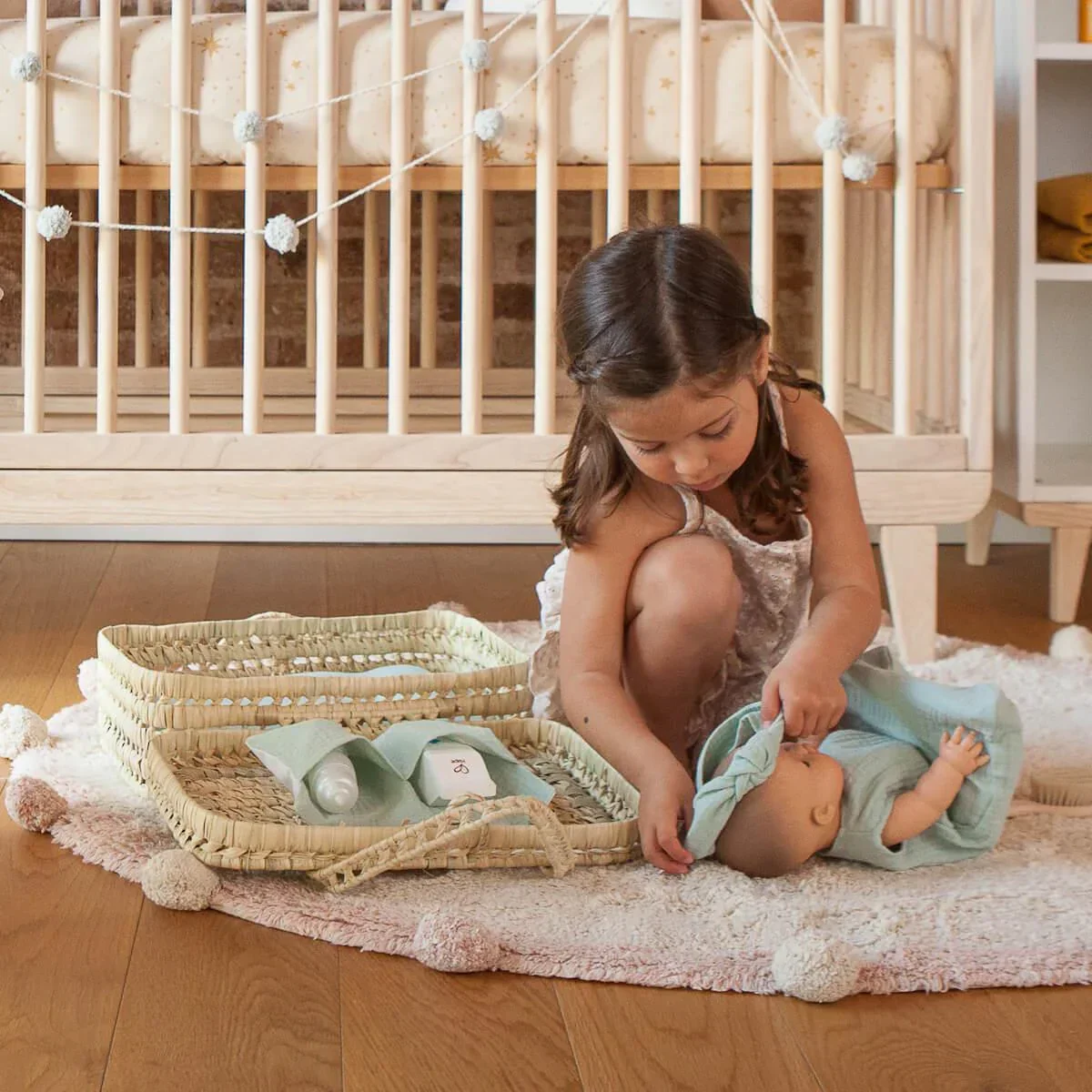 - Matériaux : textile 100% coton bio et corps en vinyle (les poupées ne contiennent pas de phtalate)