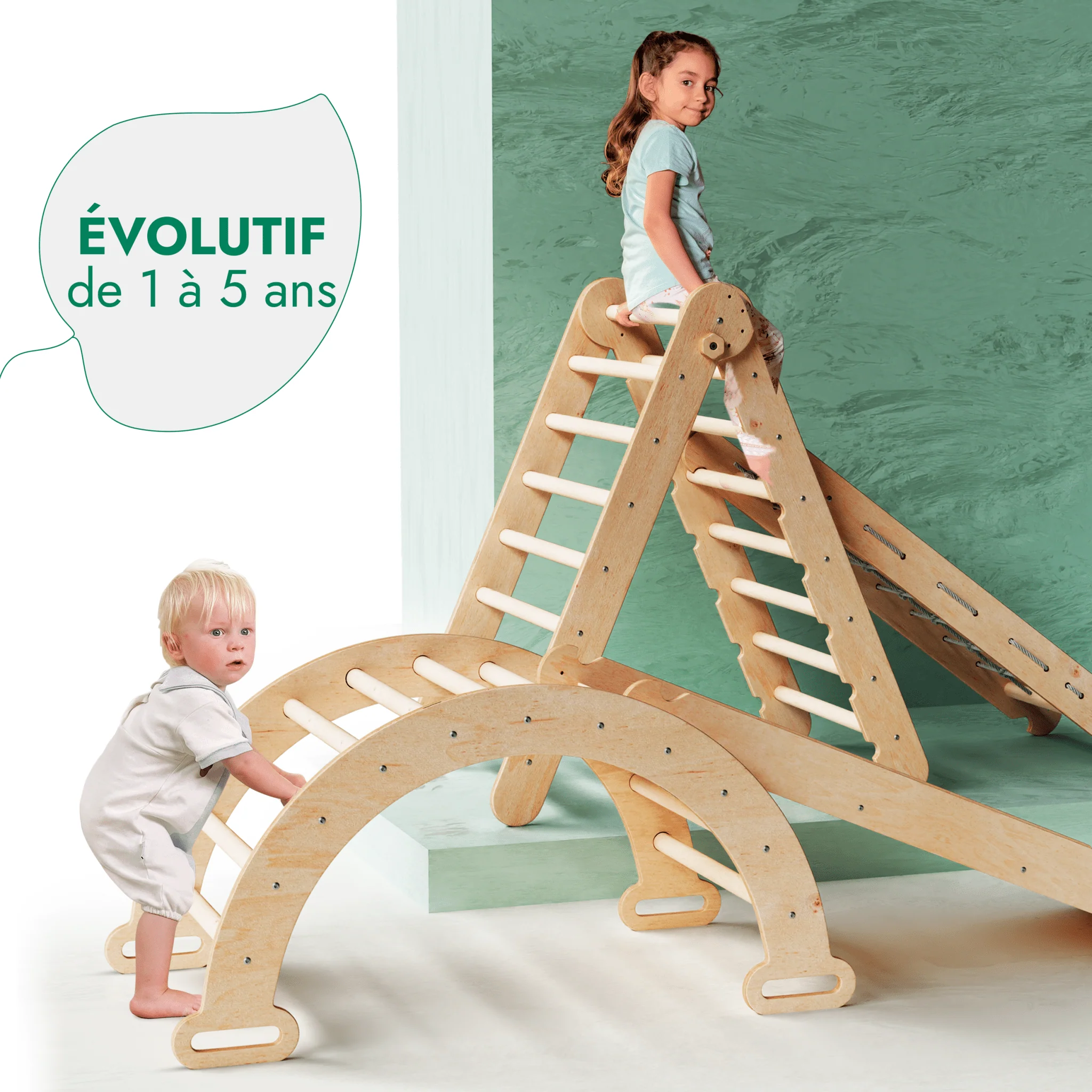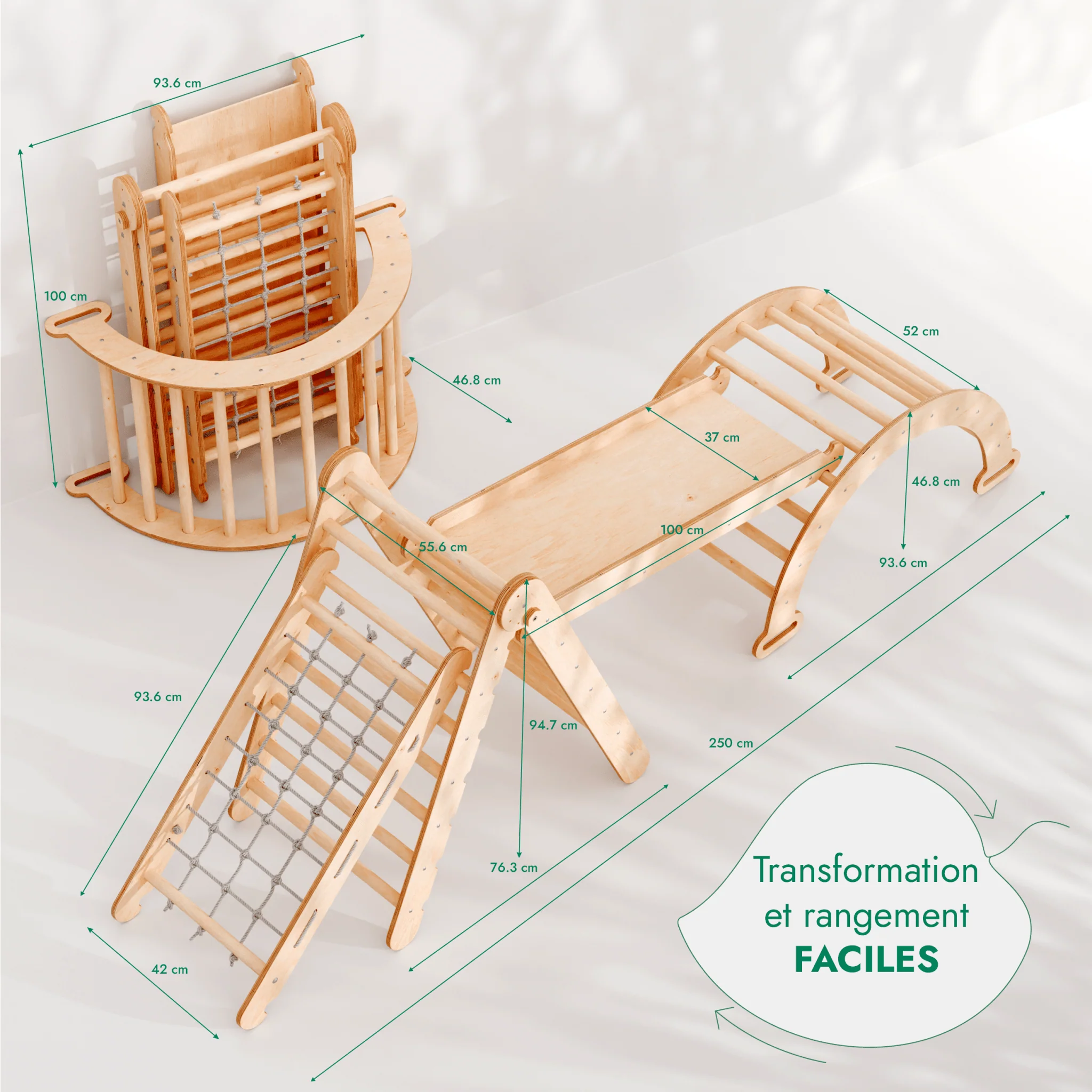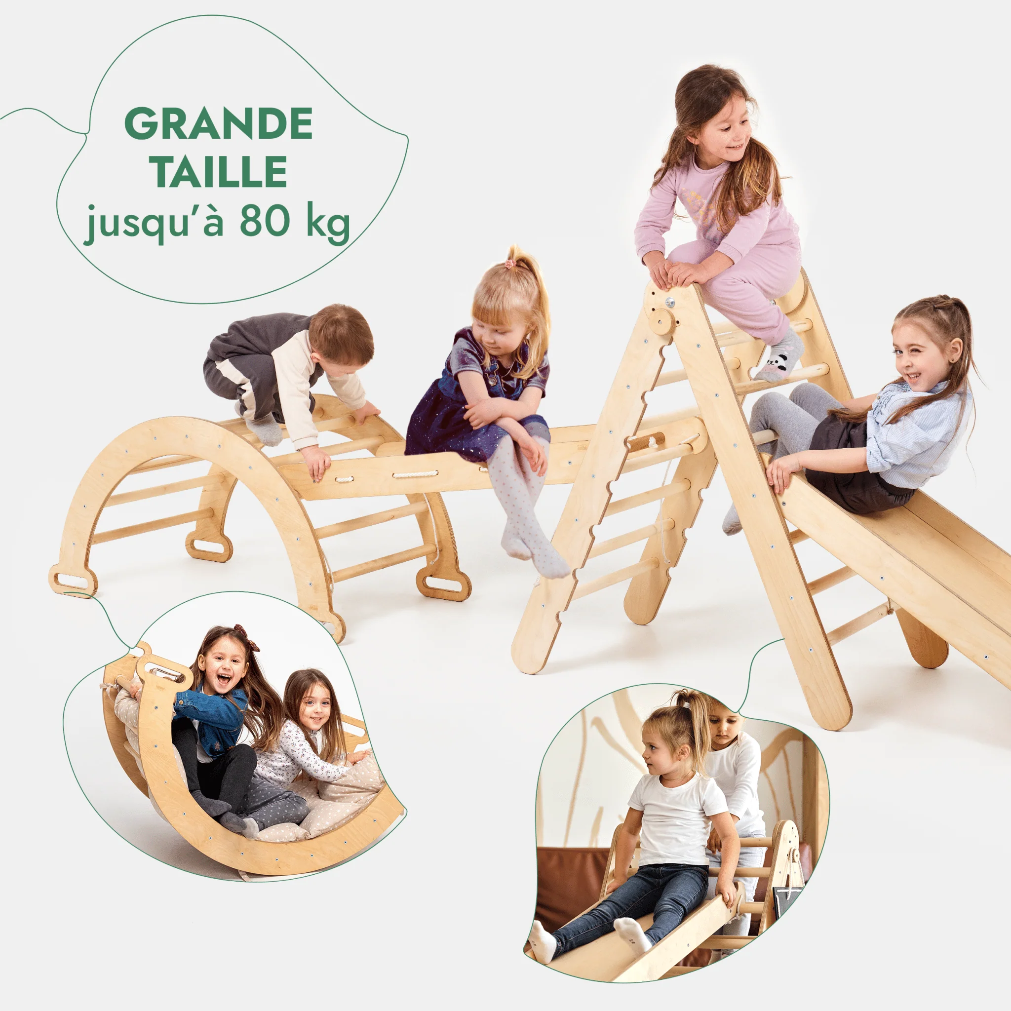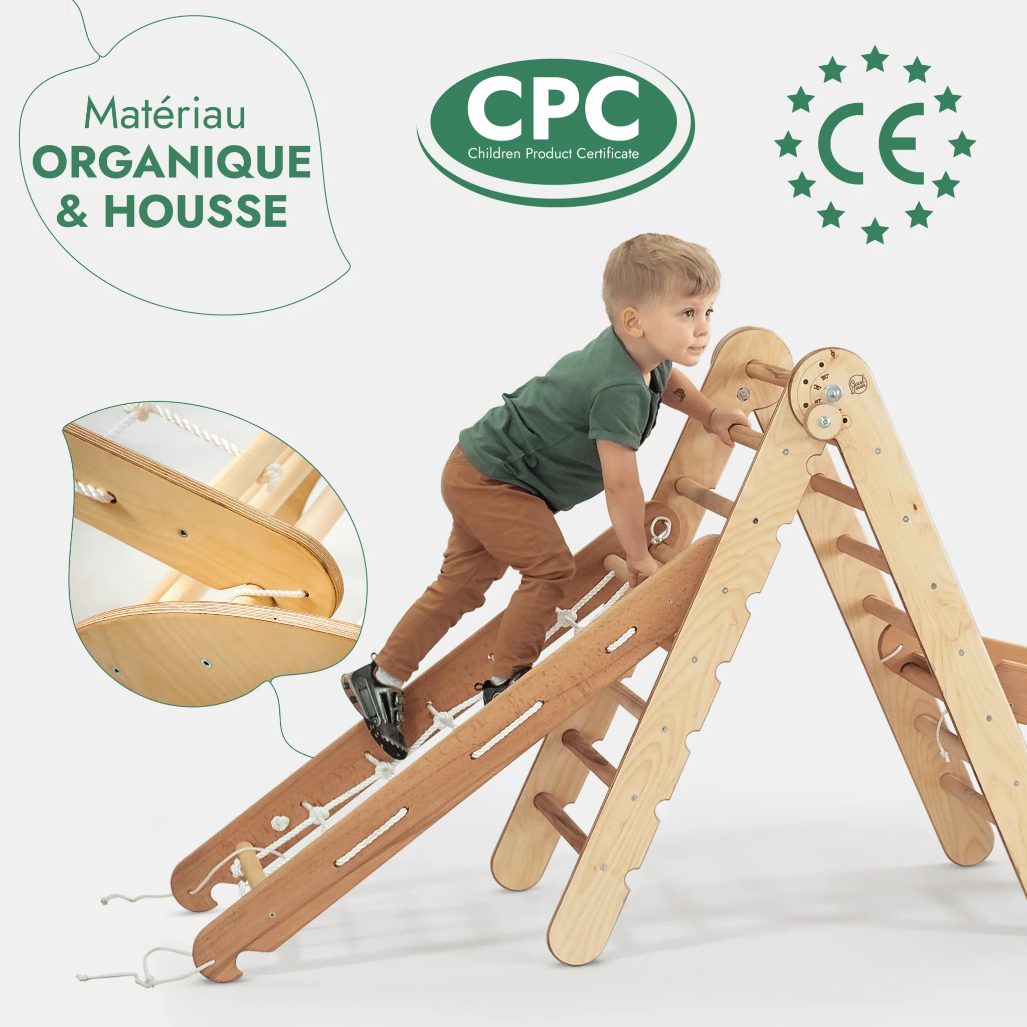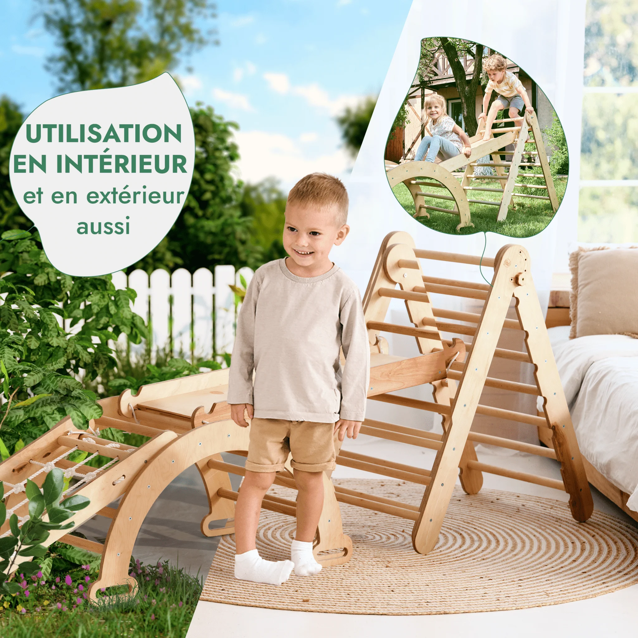 4en1: Set de Triangulaire L’échelle triangulaire + Arche+ Toboggan + Filet à grimper