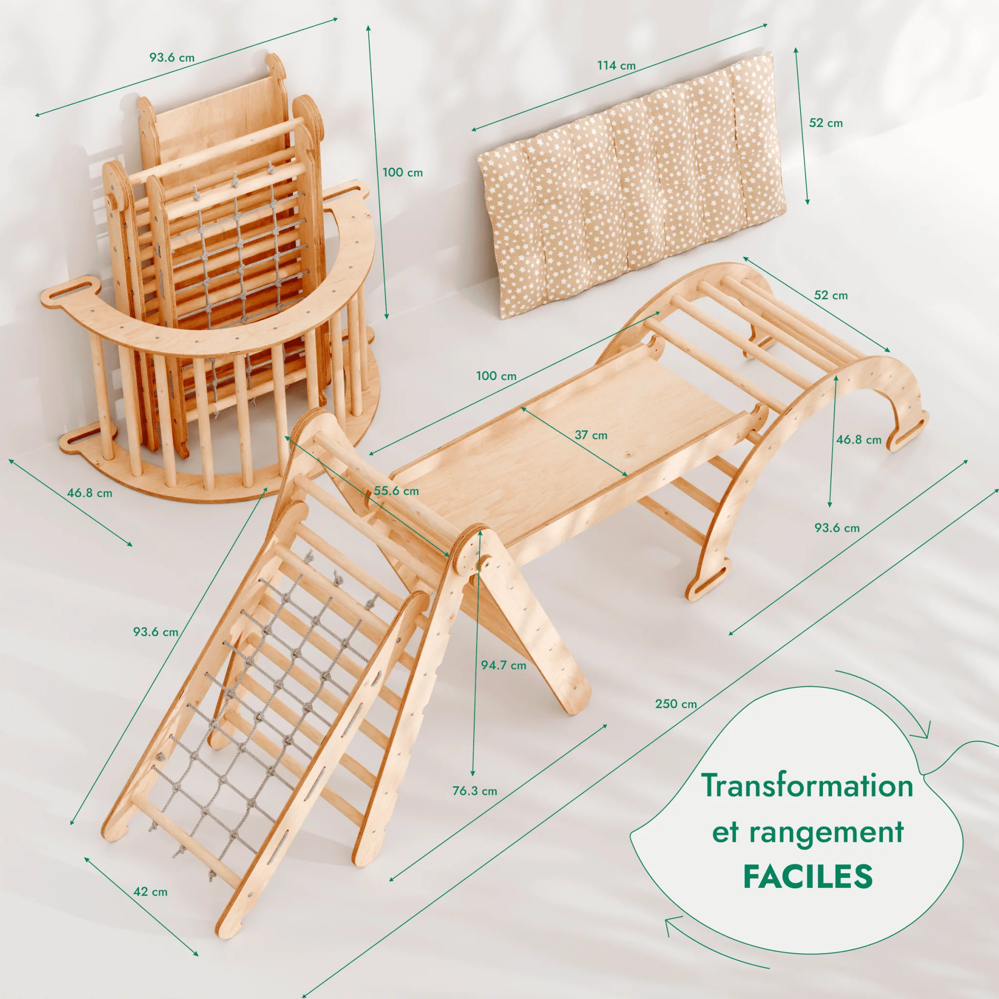 Découvrez un monde de potentiel, d’imagination et de croissance avec l’Ensemble d’Escalade Montessori 5en1 avec Coussin. Un témoignage durable du progrès permanent de votre enfant !
