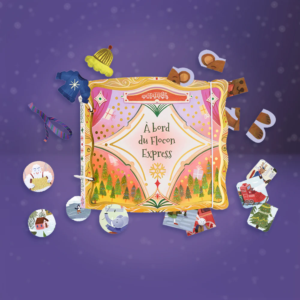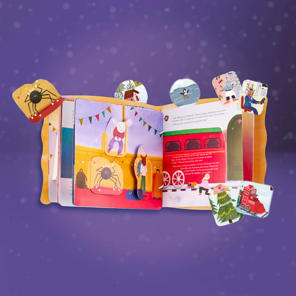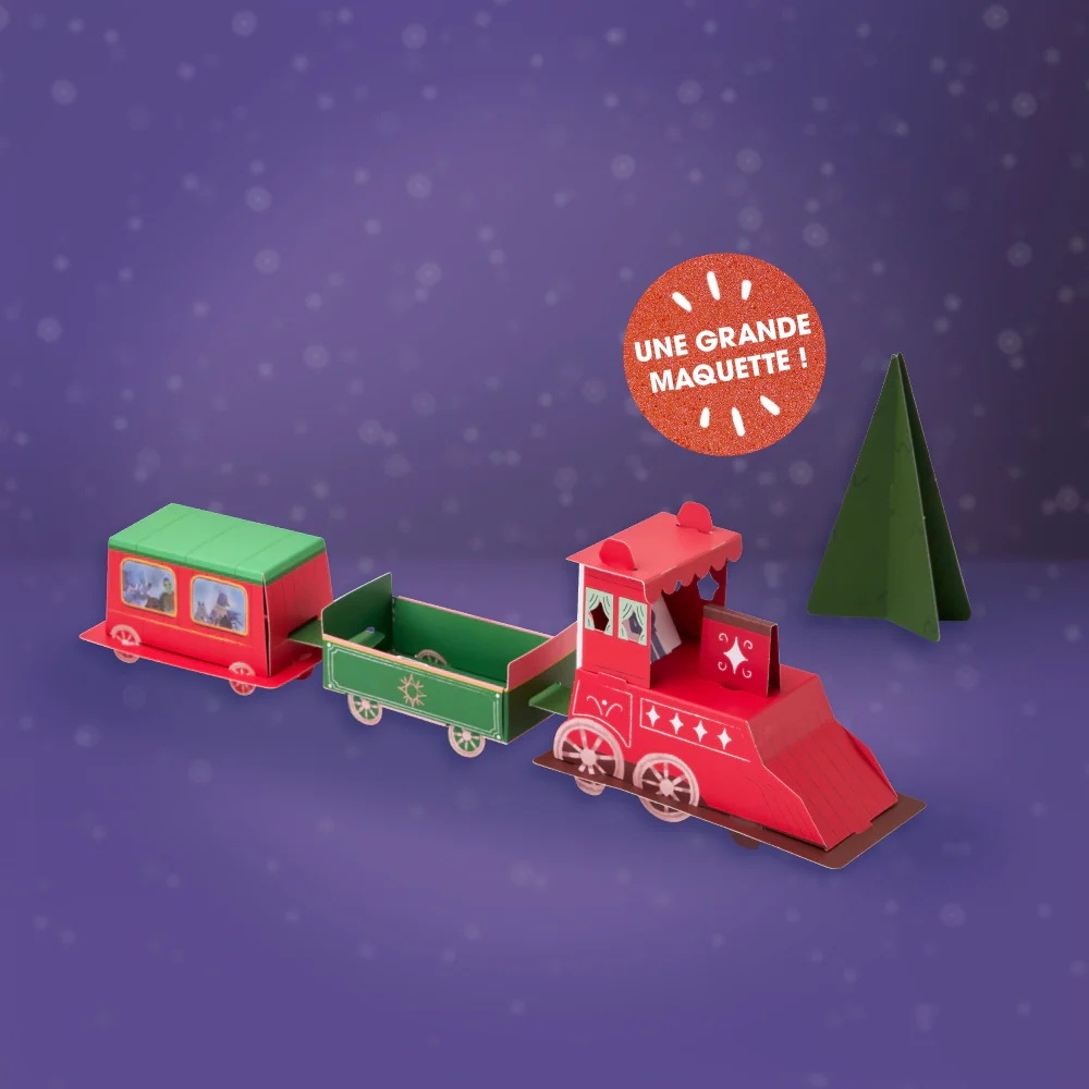 Chaque jour, une nouvelle page de conte apparaît comme par magie dans le livre que votre enfant fabrique lui-même ! Il y découvre un jeu, une activité ou des éléments à coller (autocollants, pop-up, décorations…), et embarque dans un voyage féerique où il est le héros. Entre une aventure mystérieuse dans une gare enneigée, une enquête sur l’identité du Père Noël et une mission secrète pour faire redémarrer le train du Flocon Express, l’histoire prend vie jour après jour… jusqu’à la construction d’une incroyable maquette de locomotive !