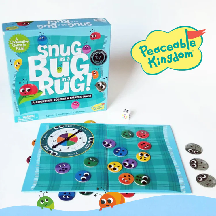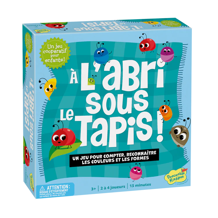 Mettez toutes les petites bestioles colorées sous le tapis avant que les trois bestioles puantes n’empestent l’endroit ! Observez bien et faites les correspondances ! Fais tourner la toupie et trouve l’insecte correspondant, puis glisse-le sous le tapis. Tour à tour, faites tourner la toupie et trouvez l’insecte correspondant, puis glissez-le sous le tapis avant que les trois punaises puantes n’y pénètrent. Chaque niveau ajoute un défi supplémentaire. Travaillez ensemble pour trouver ces correspondances, et vous gagnerez tous !