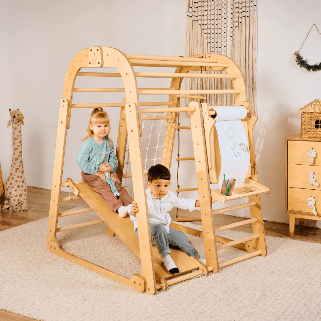 Voici l’Aire de Jeu pour Enfants, une structure d’escalade multifonctionnelle méticuleusement fabriquée et inspirée de l’approche Montessori. Conçue pour les enfants de 3 à 8 ans, cette aire de jeux permet aux jeunes explorateurs de développer des compétences telles que l’équilibre, la coordination et la motricité, tout en s’amusant ! La structure comprend :