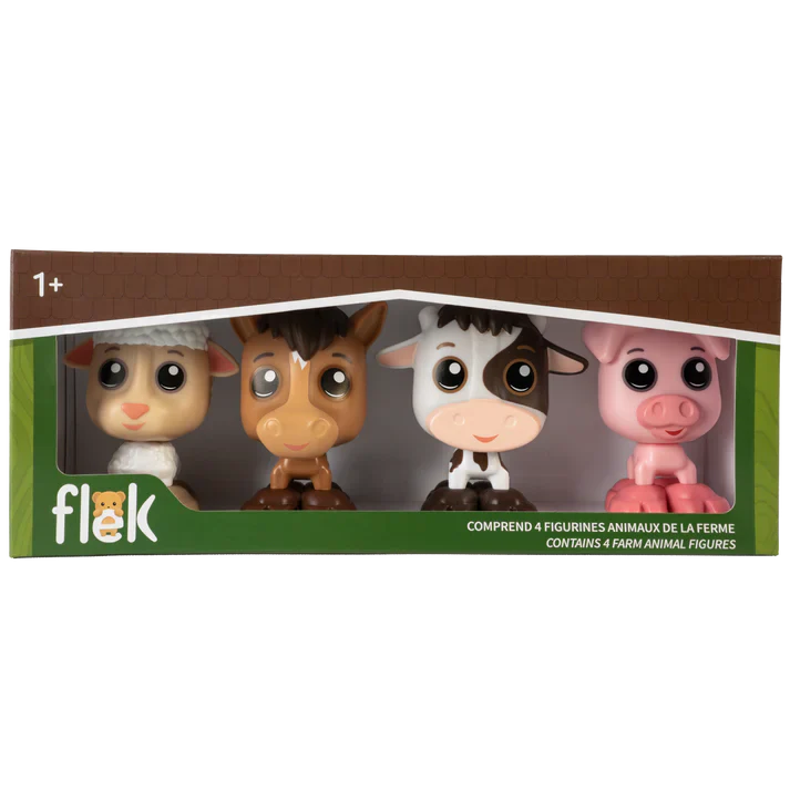 Les animaux de la ferme Flek forment une joyeuse équipe: le mouton, le cheval, la vache et le cochon vivent ensemble de grandes aventures au grand air. Attachants et pleins de caractère, ils accompagnent les figurines Flek dans tous les travaux et les jeux de la ferme.