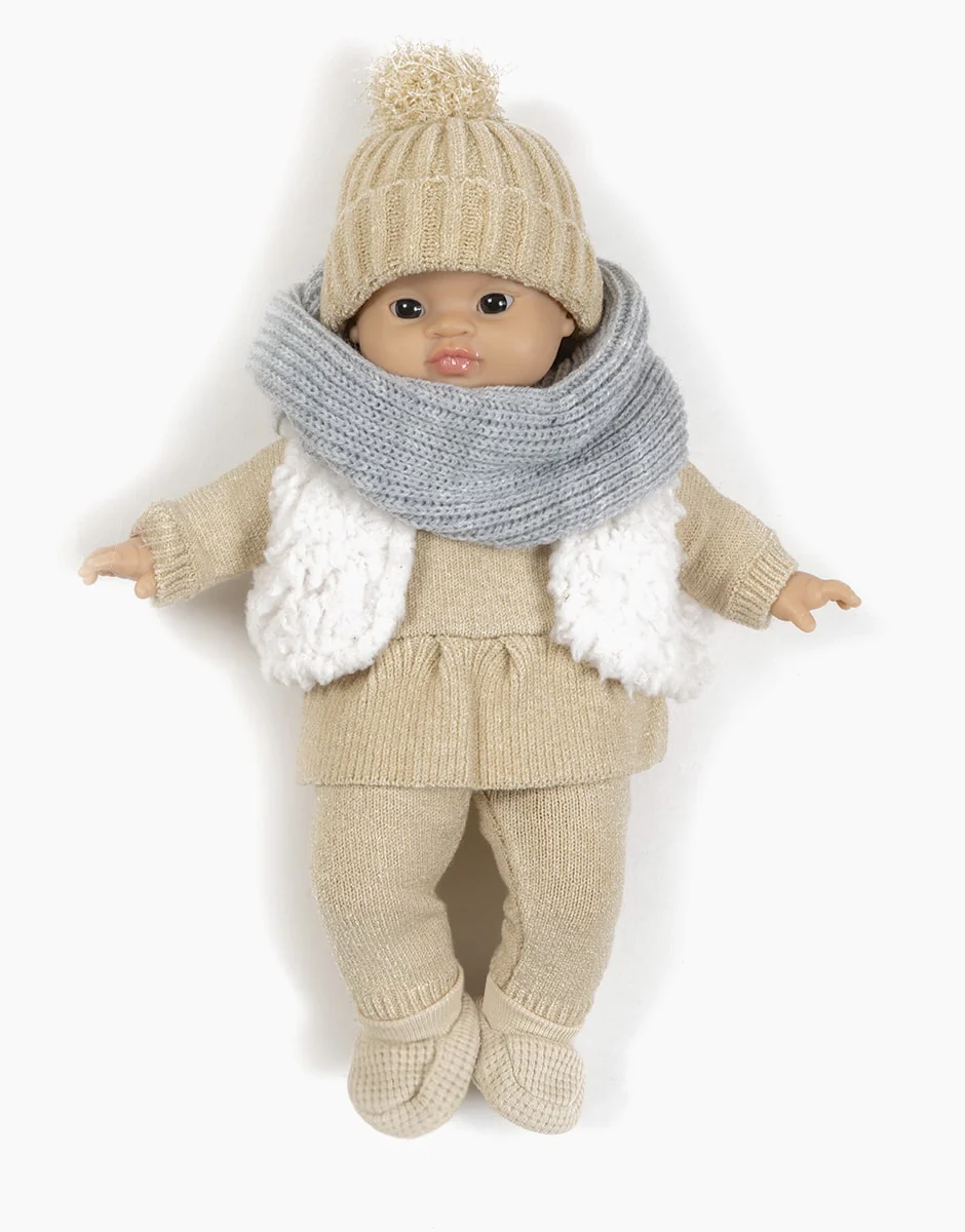 Tour de cou en tricot pour poupées et poupons Minikane Babies 28cm et Gordis 34 & 37cm.Vendu seul. Composition du tricot : 55% laine, 40% acrylique, 5% spandex | lavable à la mainDesigné & développé en France. Confectionné en Indonésie