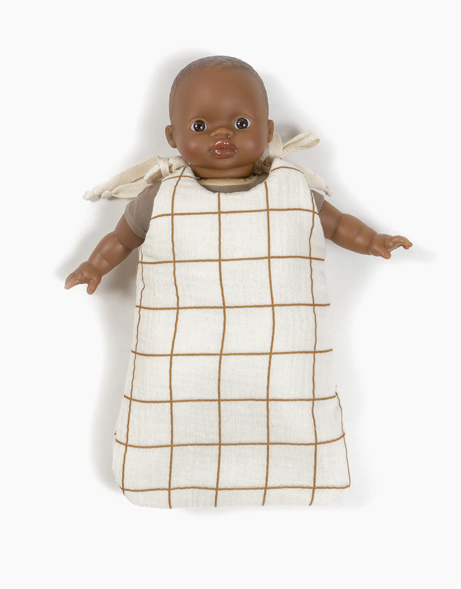 Turbulette à nouette en double gaze pour poupées et poupons Babies 28cm Minikane.Design, développement & confection made in France. 100% cotton dolls sleeping bag for Babies 28cm.Design, development & tailoring made in France.