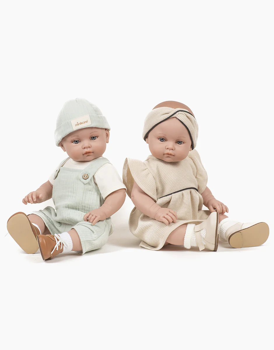 Paire de chaussures à lacets “Derbies” pour poupées et poupons Minikane Bambinis 47cm. Design, développement & confection made in France par Collégien.Design, development & tailoring made in France.
