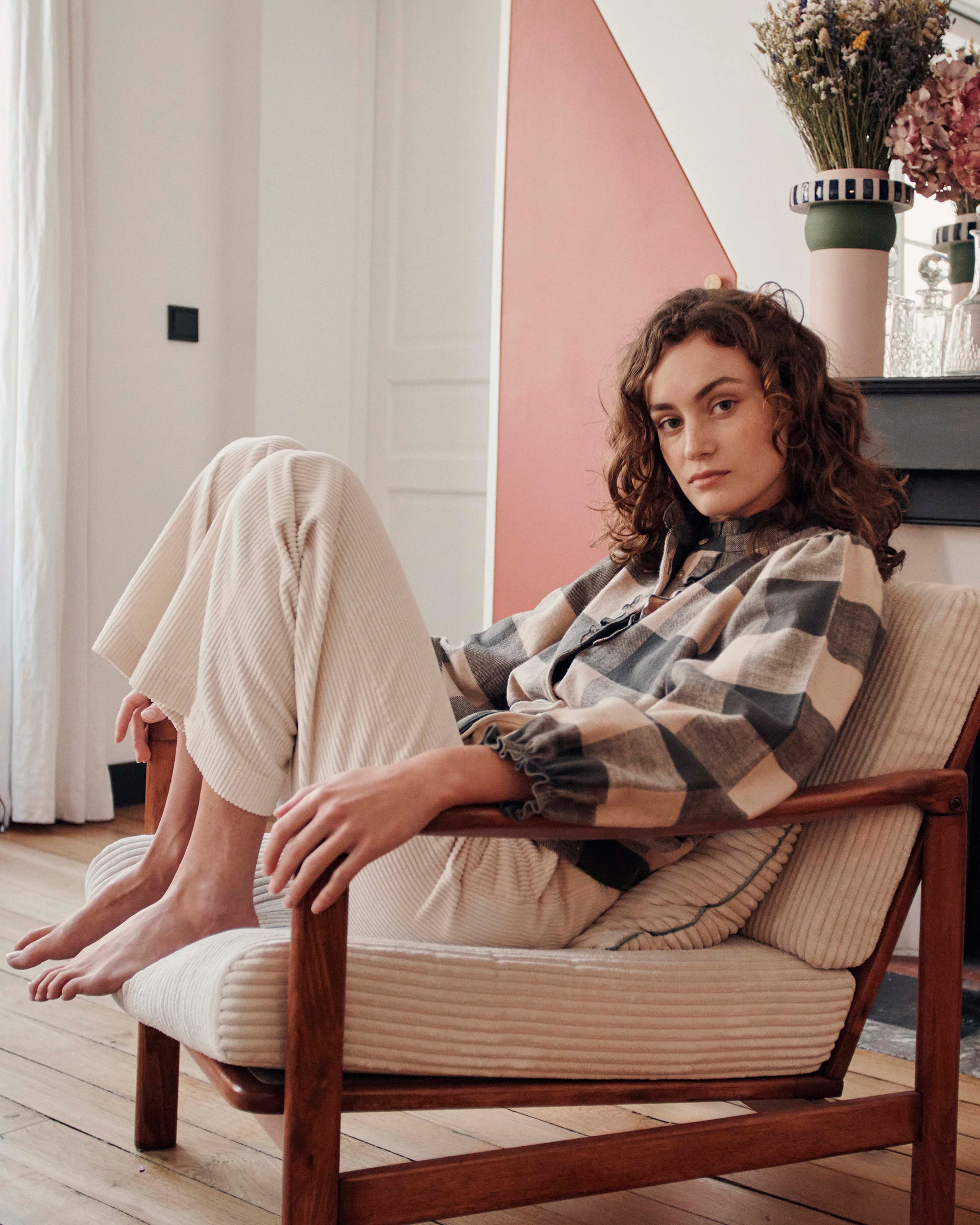 On aime le tissage obliques des carreaux, le col plat, les ouvertures aux poignets, les boutons en bois qui la ferment.