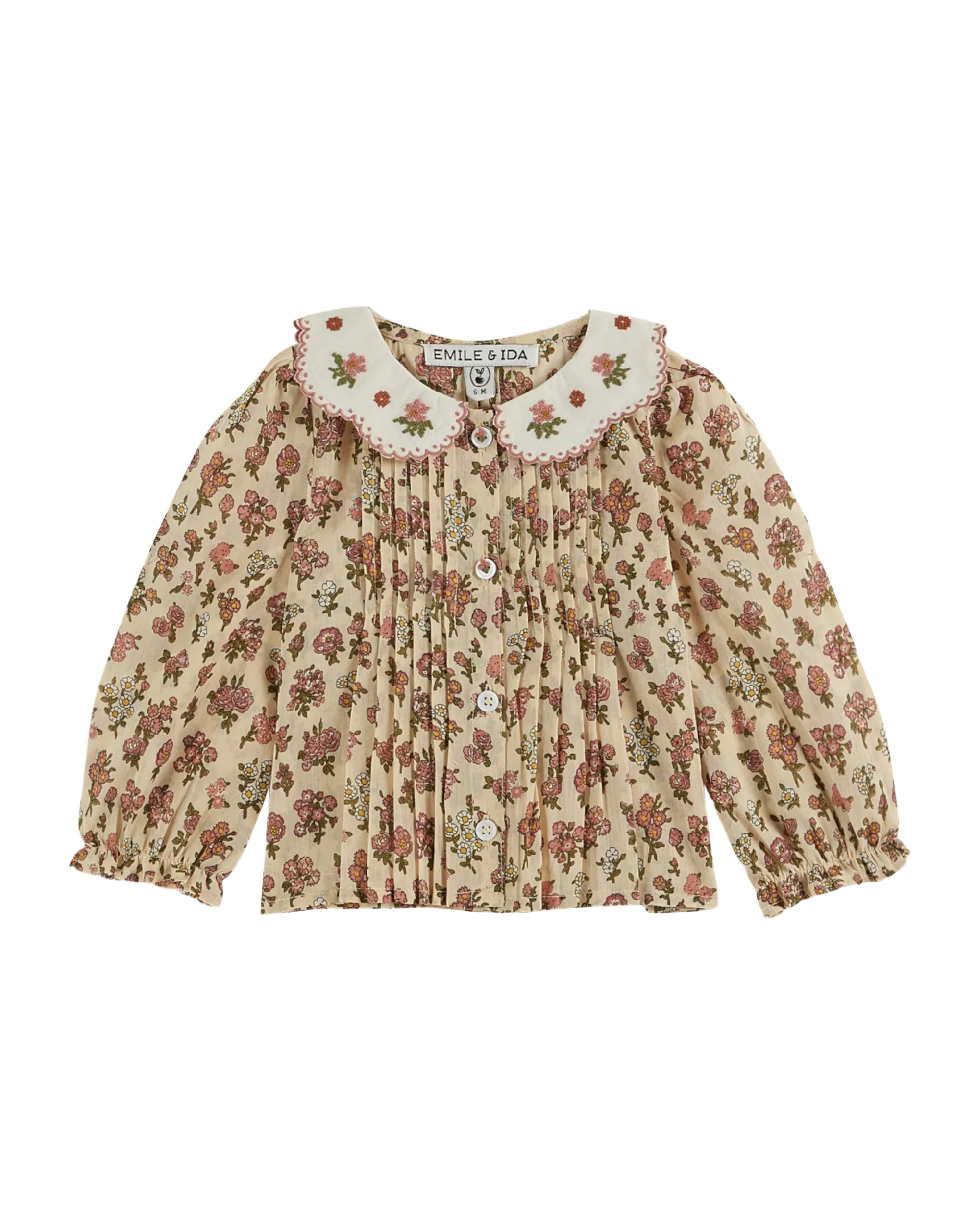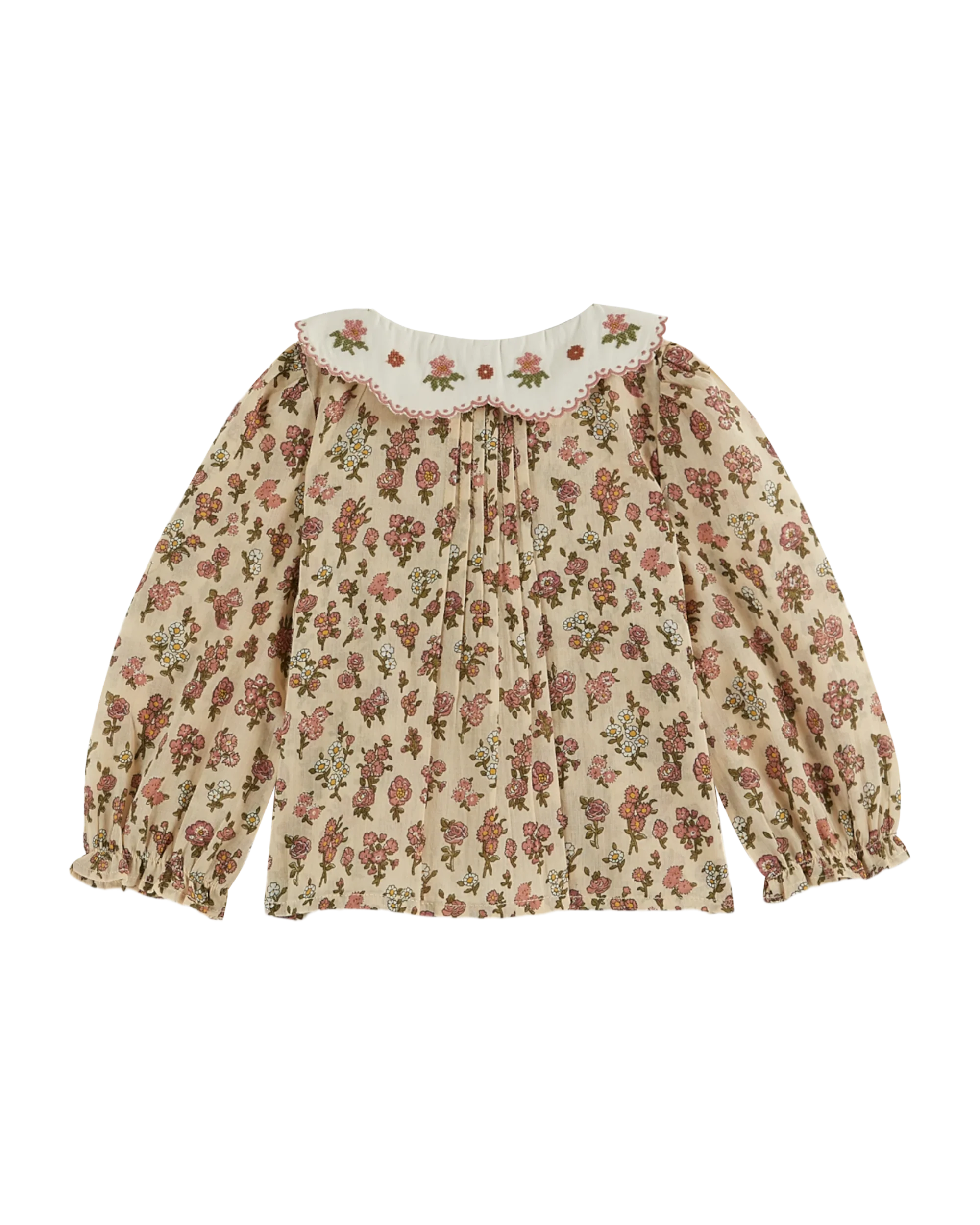 Blouse – Col brodé champêtre rose