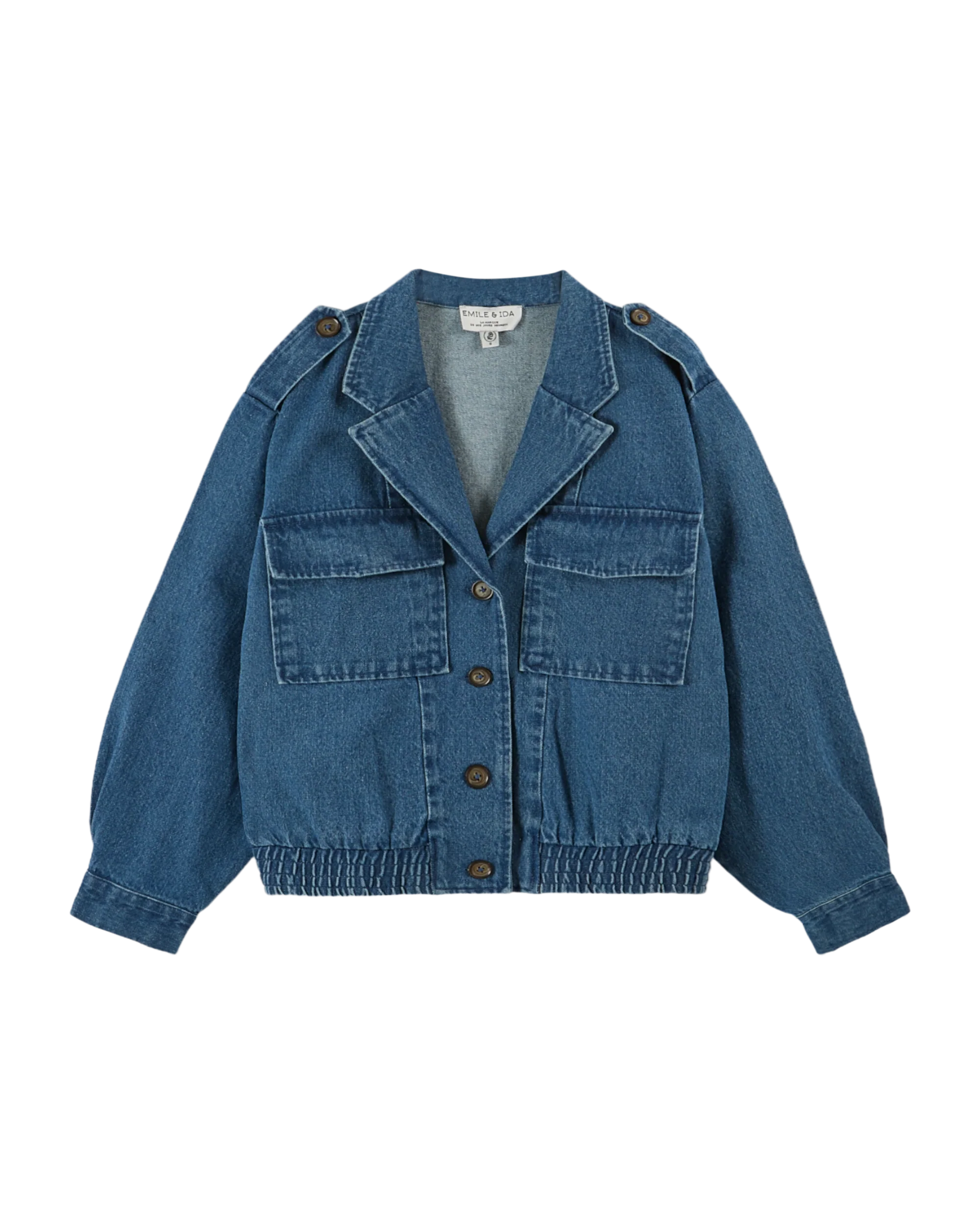Blouson en toile de coton denim bleu.