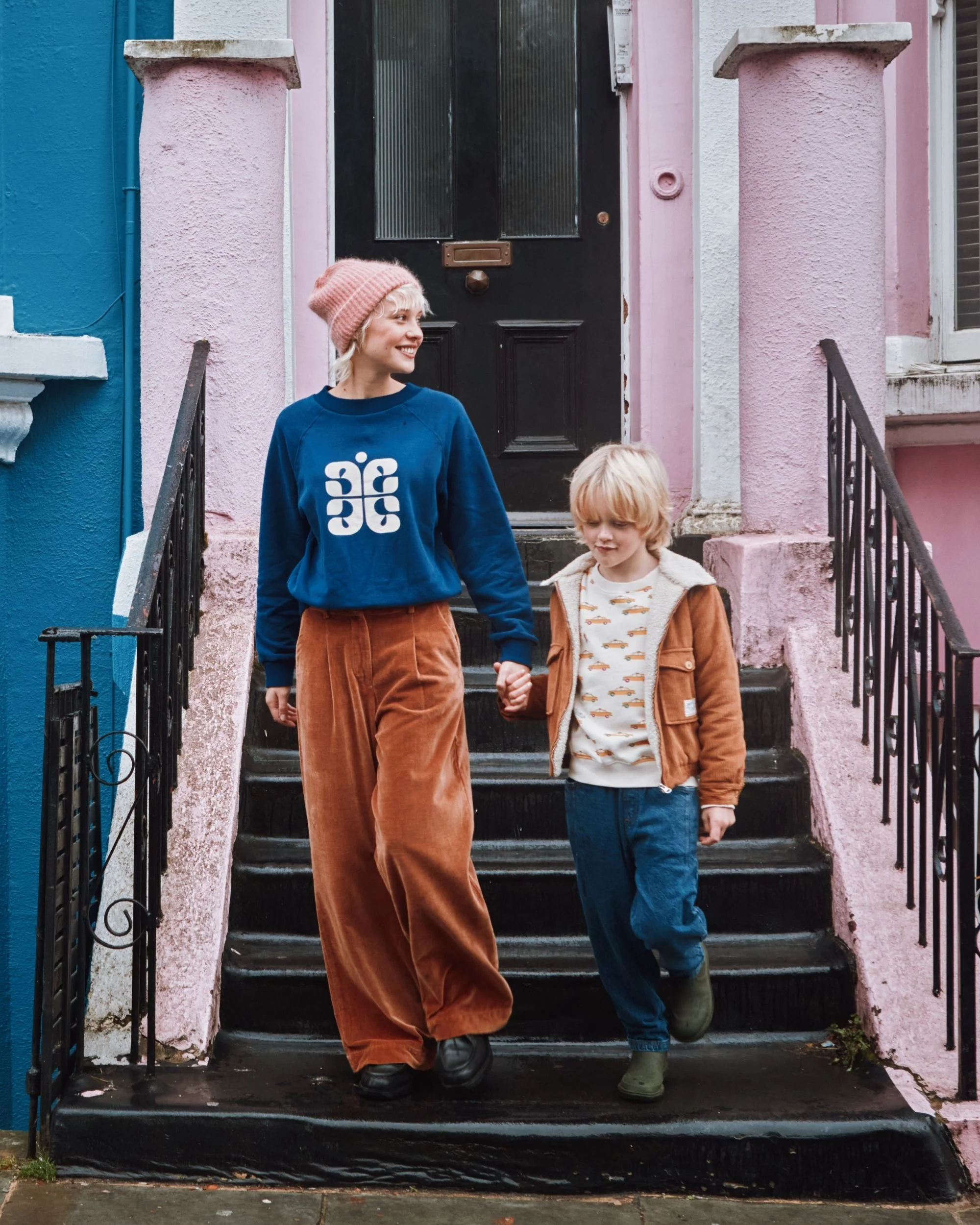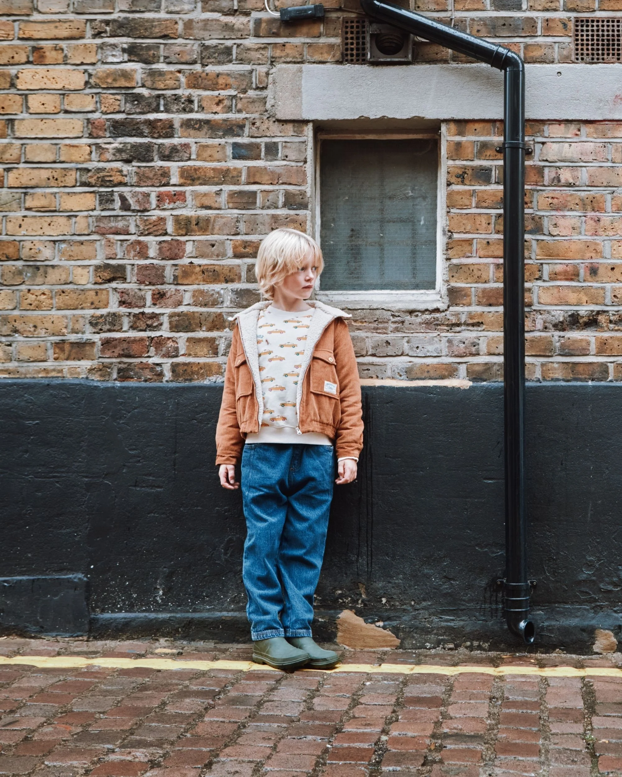 Blouson en velours de coton caramel côtelé doublé en fourrure synthétique écru.