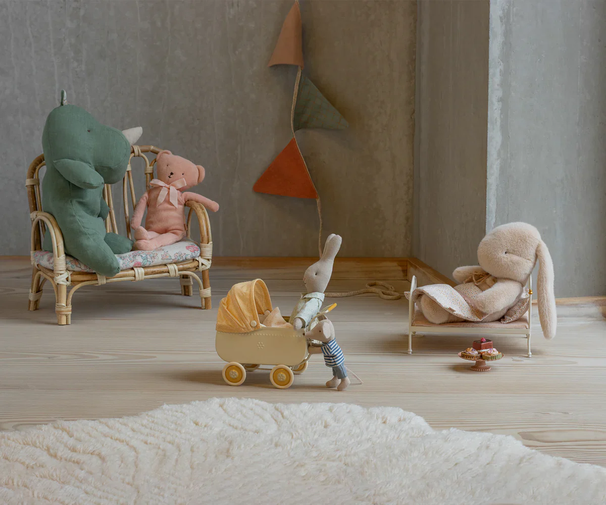 Ce petit lapin est confectionné dans une peluche ultra douce et au toucher vraiment unique. Avec son joli nœud autour du cou, il ne manquera pas de faire fondre les cœurs. C’est un compagnon idéal pour les jeux et les câlins. Taille 27 cm