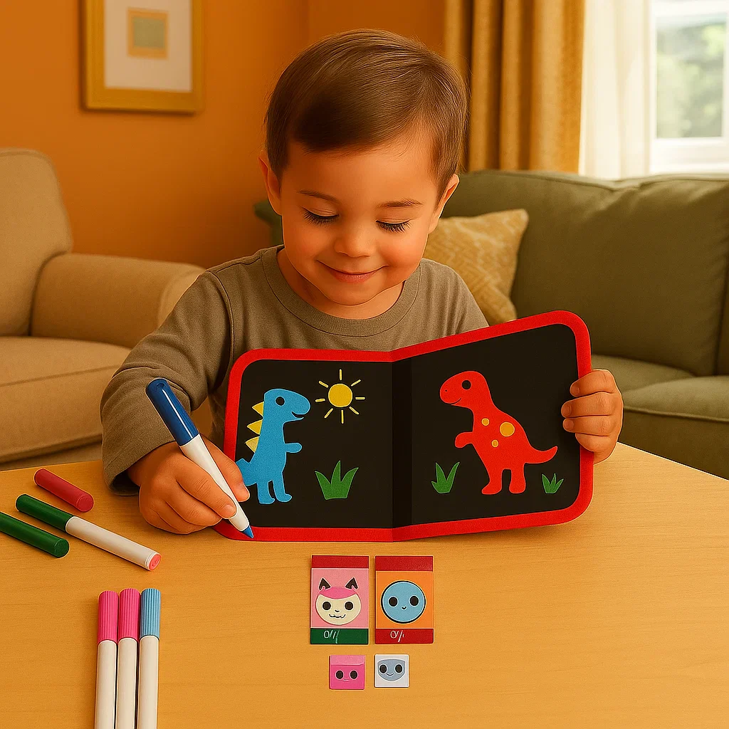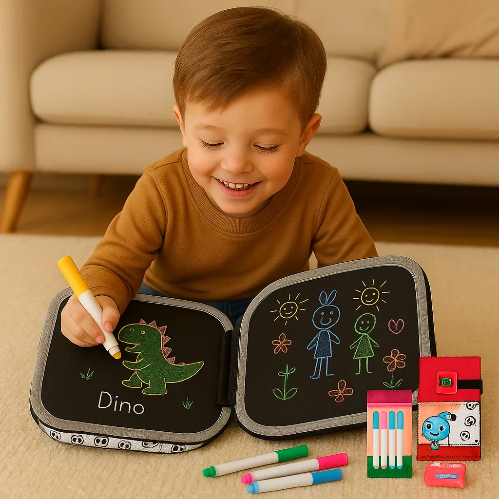 Plus qu’un simple bloc à dessin, cet outil inspire confiance et indépendance. Les enfants apprennent à expérimenter, à s’exprimer et à développer des compétences clés tout en s’amusant sans fin, le tout dans un seul livre réutilisable. Les pages effaçables encouragent la créativité sans gaspillage, tandis que l’utilisation répétée aide les enfants à développer leur concentration, leur motricité fine et leurs capacités à résoudre des problèmes.