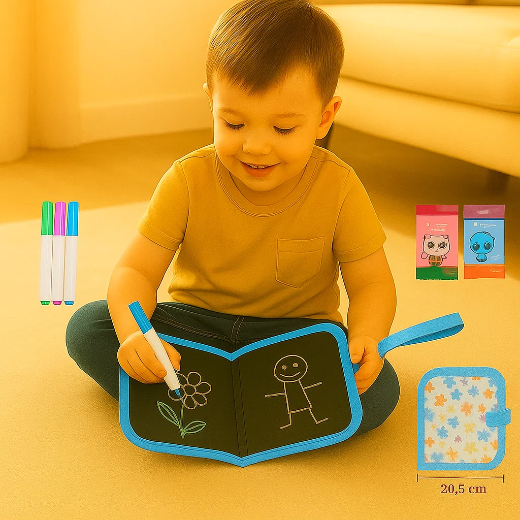 Offrez à votre enfant le support idéal pour laisser libre cours à son imagination avec le cahier de dessin réutilisable pour enfants ! Ce bloc-notes portables et effaçable transforme chaque instant en une occasion de s’amuser, d’apprendre et d’explorer sa créativité, que ce soit à la maison ou en déplacement.
