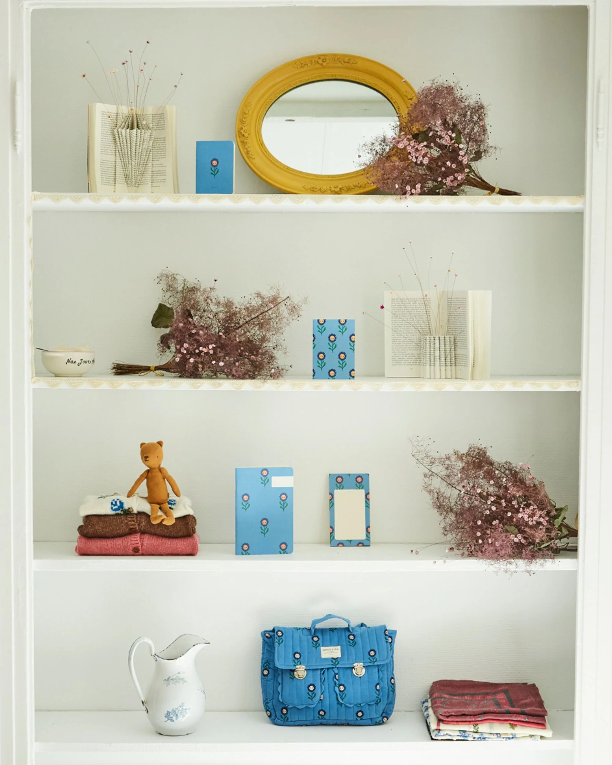 Pour cette seconde collab, une petite marguerite à l’expression espiègle et enjouée s’est invitée sur de jolis vêtements et sur tout un set de papeterie. Avec son regard en coin, son adorable sourire et ses couleurs un brin rétro, le motif Happy marguerite va enchanter la rentrée.