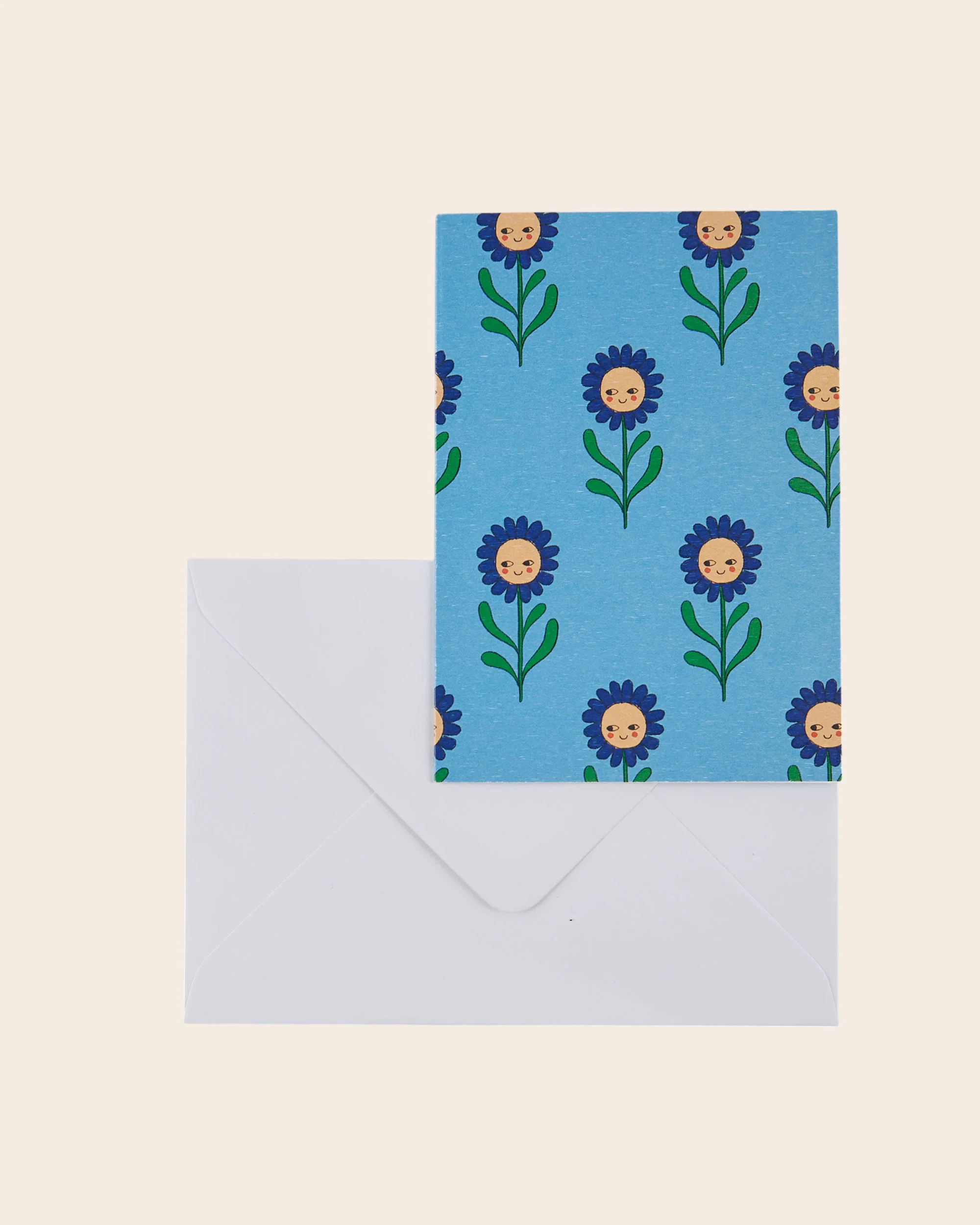 Carte double marguerite bleu avec enveloppe Emile & Ida x Season Paper.