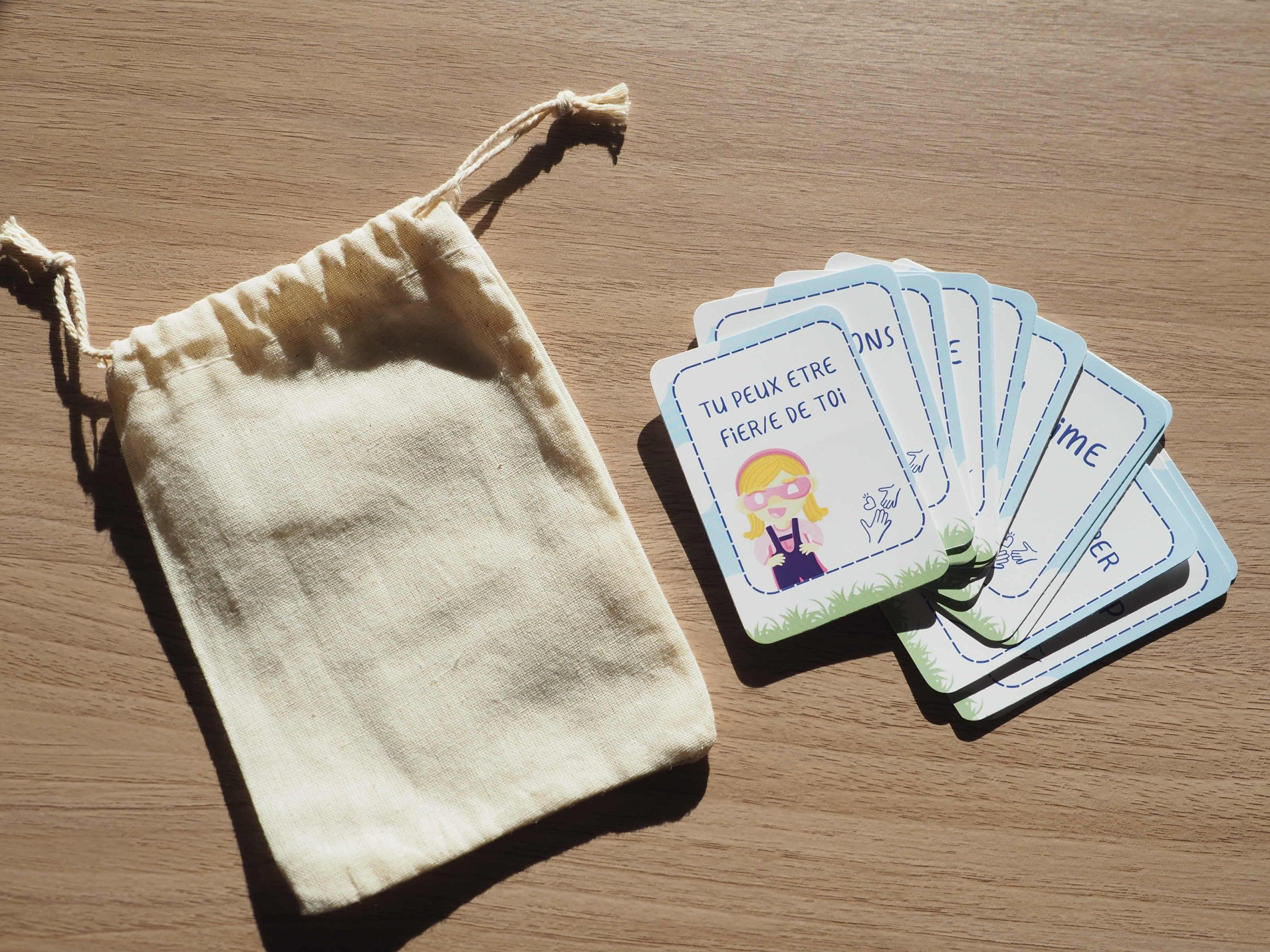 - Lot de 16 cartes illustrées avec des messages positifs pour encourager la valorisation et la félicitation