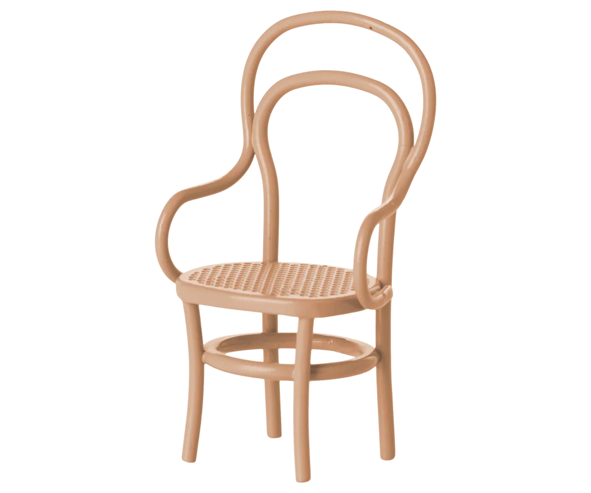 Mobilier pour souris. Une chaise vintage qui convient aux souris Petit(e)s sœur/frère et Grand(e)s sœur/frère. Elle s’intègre parfaitement aux différents environnements des souris et s’associe aux autres meubles et accessoires de taille Souris. Dimensions : 8,5 x 4,5 x 3,5 cm