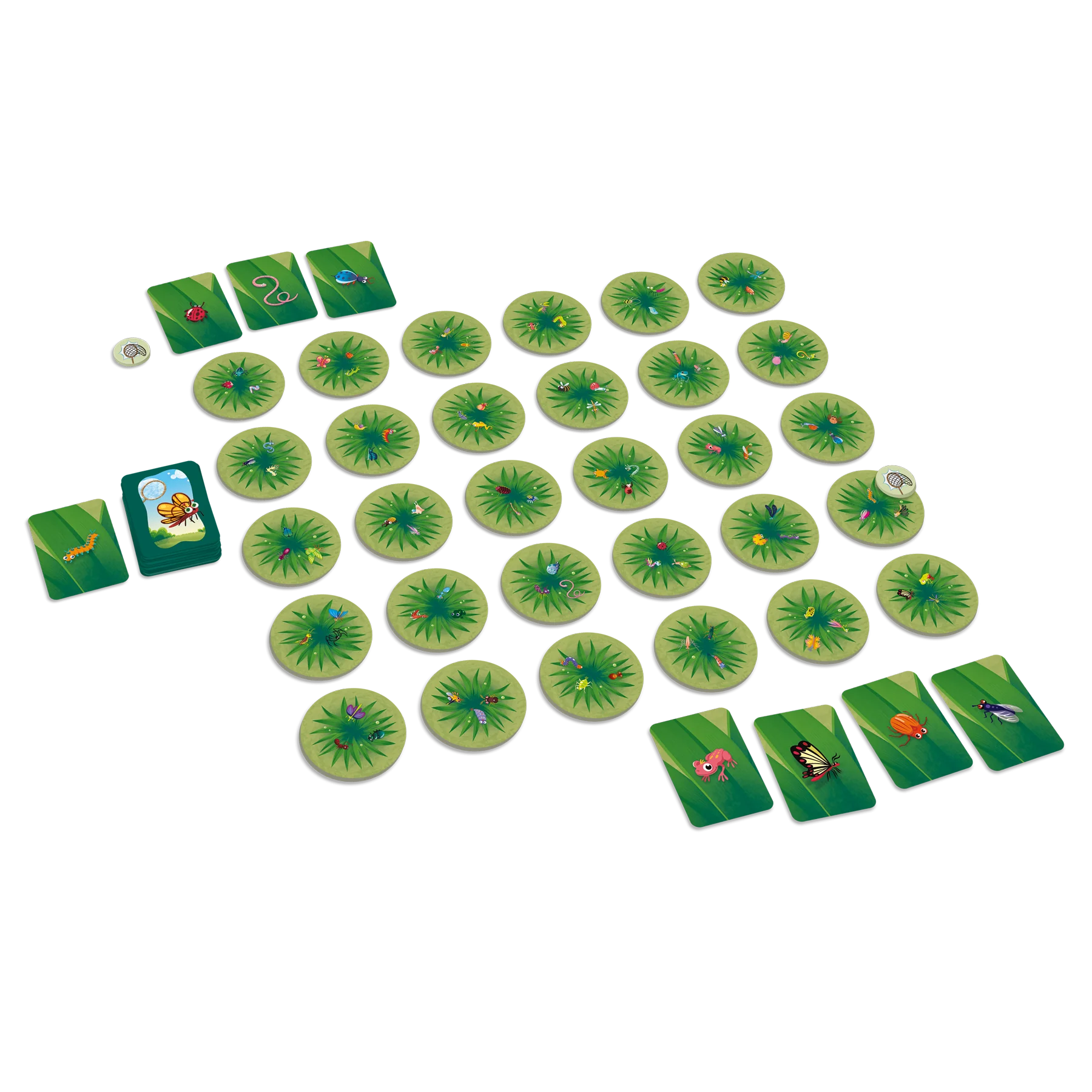 Plus en détail, les joueurs doivent d’abord placer les 30 cartes-herbes aléatoirement sur la table. Trois bestioles sont représentées sur chacune de ces cartes. Les joueurs prennent ensuite une carte-bestiole; celle-ci illustre la bestiole qu’ils doivent trouver le plus rapidement possible sur une des cartes-herbes. Ils tentent de « l’attraper » avec leur jeton-filet. Le premier qui réussit garde la carte-bestiole, le but étant de récolter le plus de cartes possible. Pour les plus petits, afin de rendre le jeu plus facile, il est possible de jouer avec 15 cartes-herbes et les cartes-bestioles correspondantes.