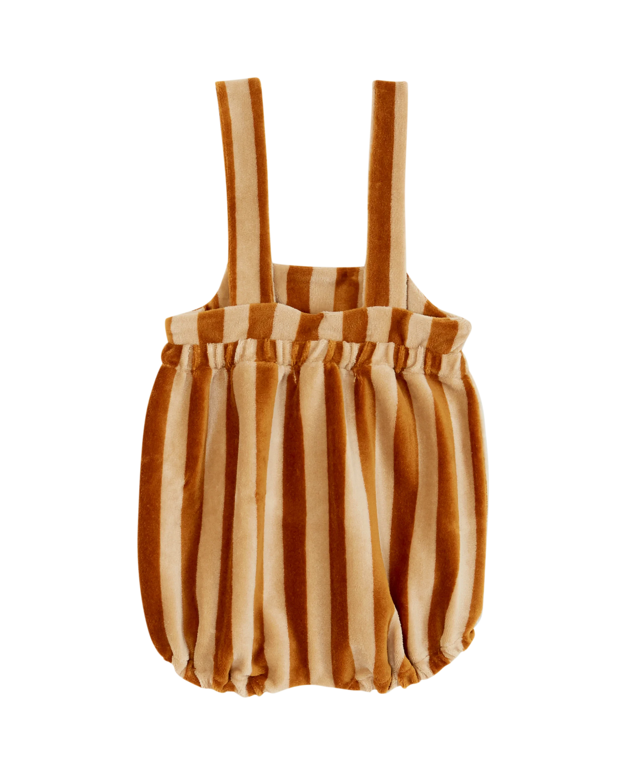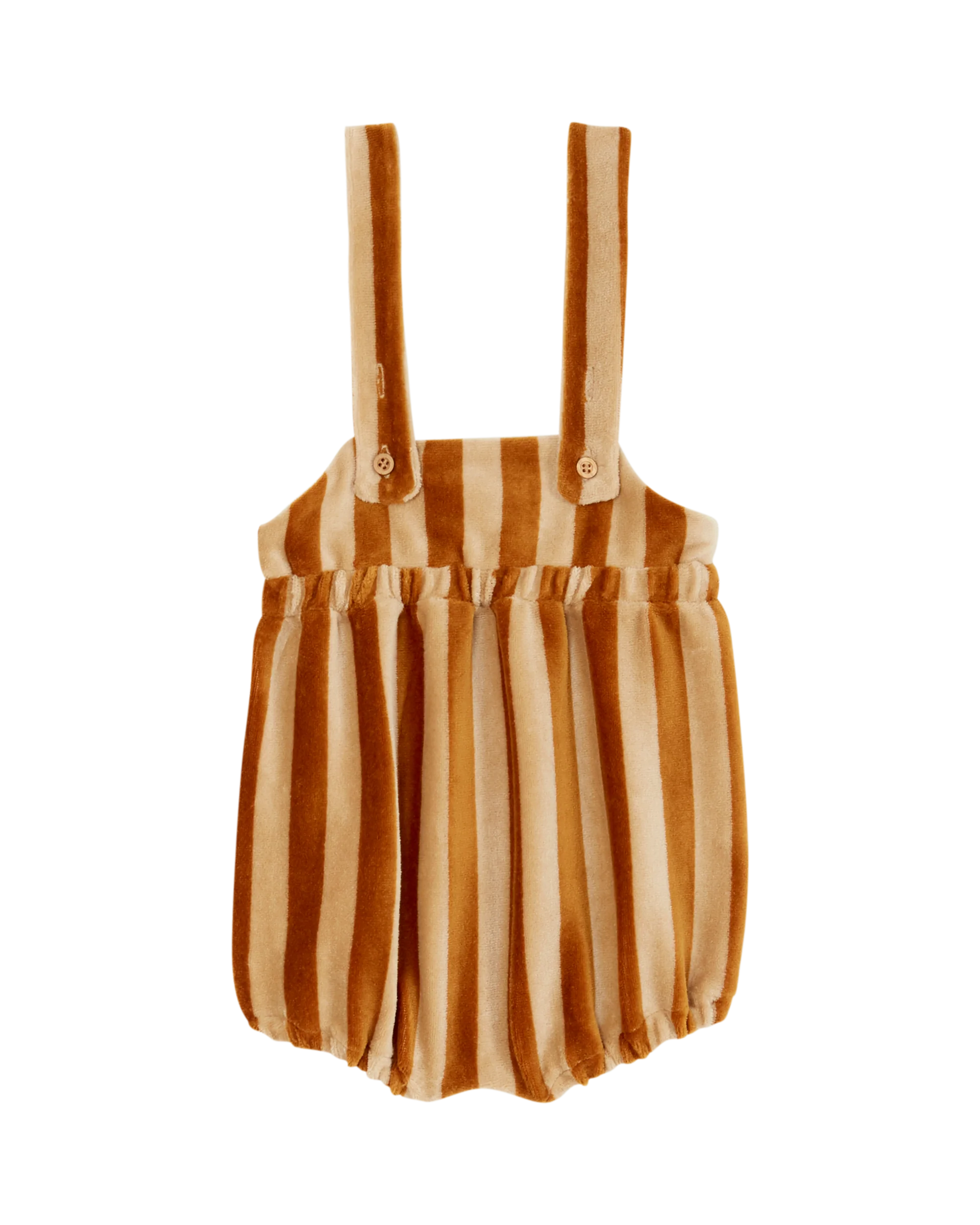 Combibloomer en velours rayé macadamia. De la douceur, encore de la douceur, toujours plus de douceur pour ce bloomer qui emprunte quelques codes à la salopette : une mini bavette doublée remontant au-dessus de la ceinture élastiquée et les bretelles ajustables avec des boutons en bois. Pour finir, le tour des cuisses est extensible et […]