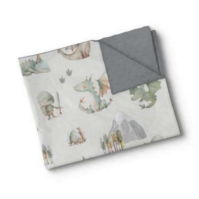 Couverture fabriquée entièrement en minky de qualité supérieure : à motif d’un côté et uni (relief à pois) de l’autre.