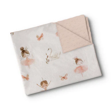 Couverture fabriquée entièrement en minky de qualité supérieure : à motif d’un côté et uni (relief à pois) de l’autre.