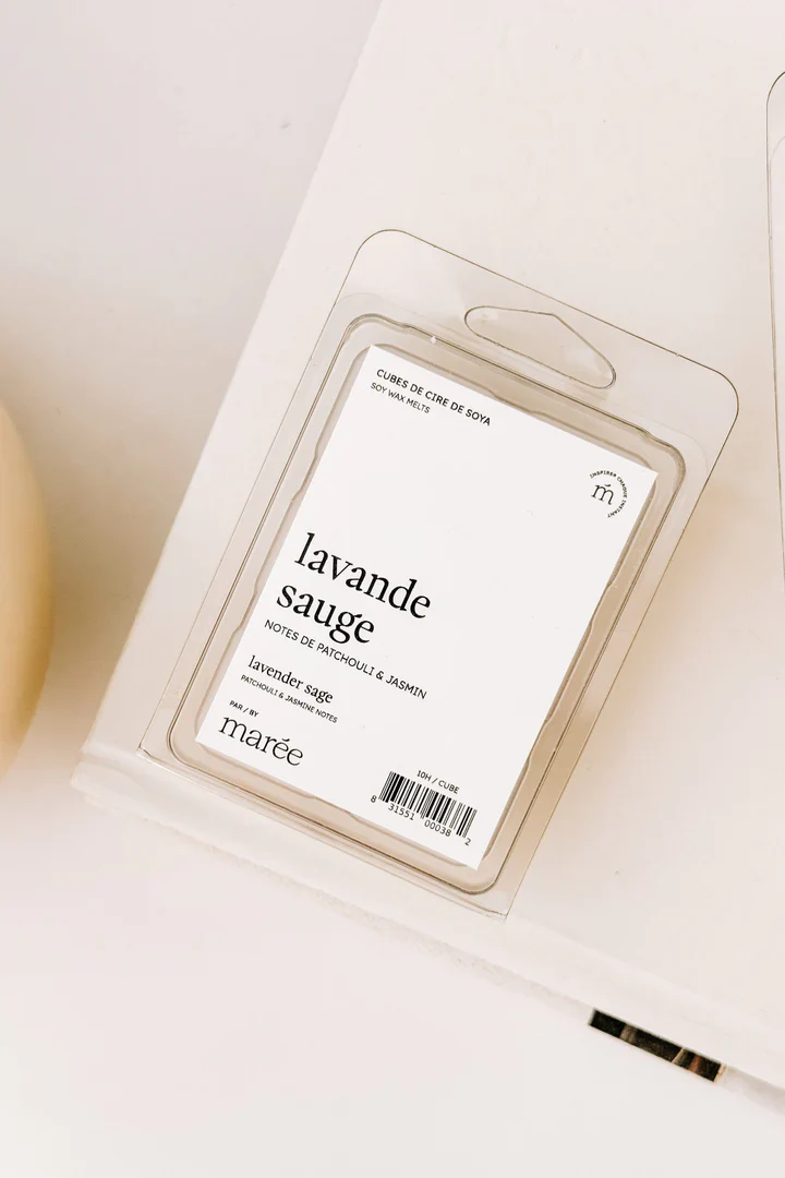 Découvrez les cubes de cire de soya Lavande sauge, une harmonie parfaite entre le parfum de la lavande fraîchement coupée et la fraîcheur boréale des feuilles de sauge.