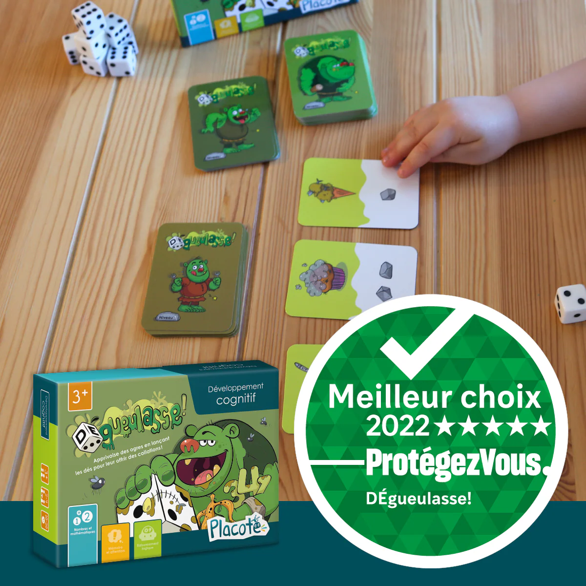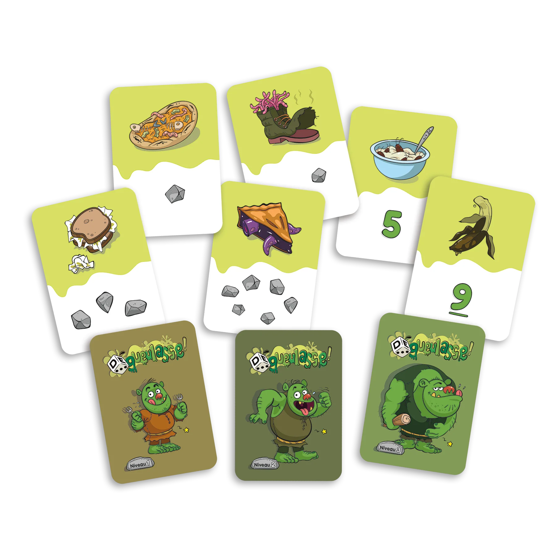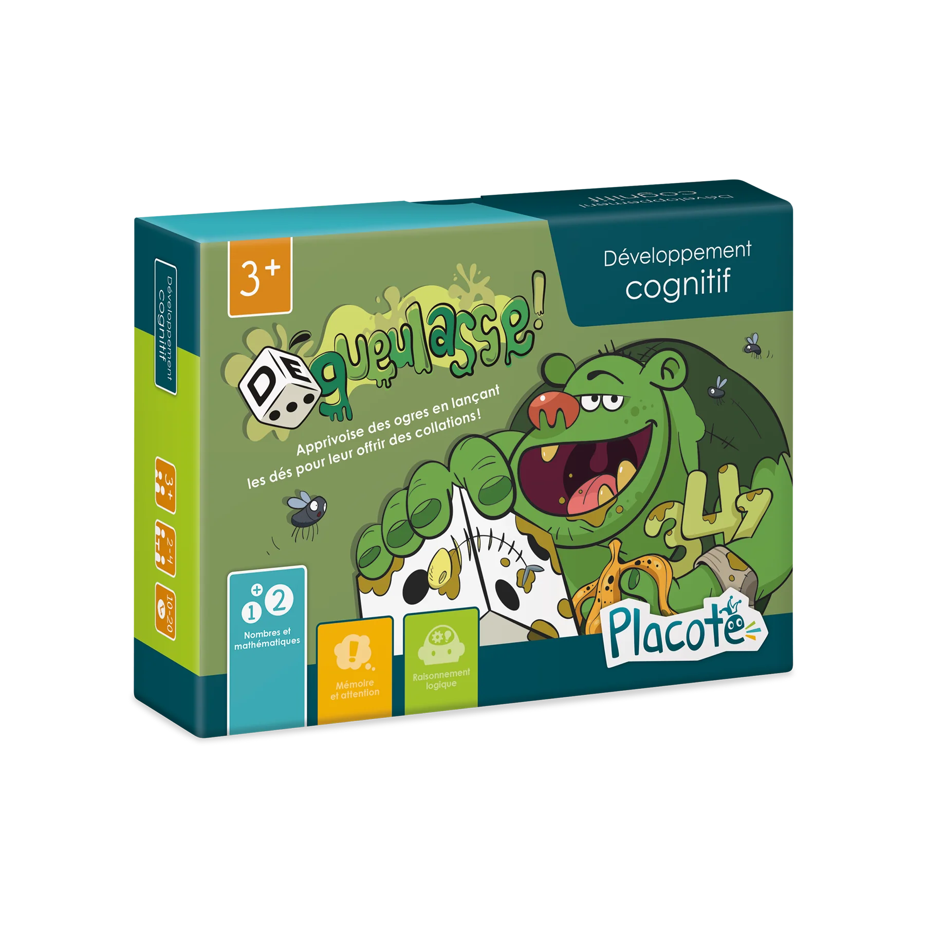 DÉgueulasse! est conçu pour aider les enfants de 3 ans à 9½ ans à développer leur compréhension des nombres et leurs habiletés de calcul. Les trois niveaux de difficulté en font un jeu évolutif qui tient compte de l’ordre d’acquisition des différents concepts liés aux nombres.