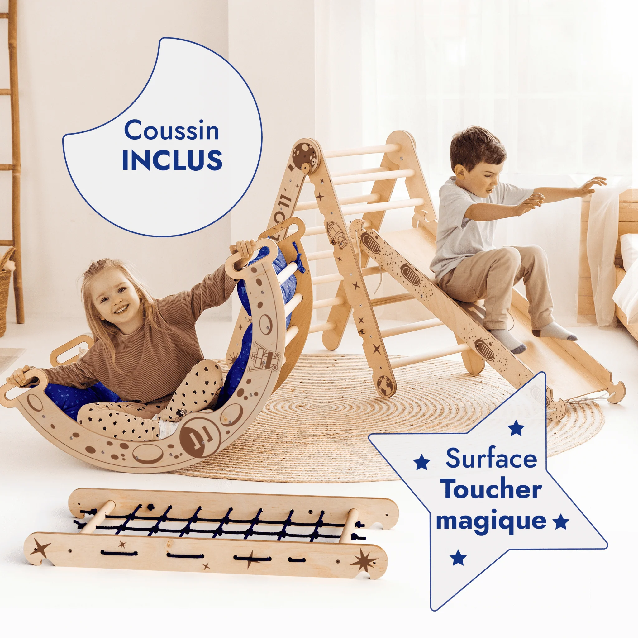 Soyez le premier à laisser votre avis sur “Ensemble d’escalade Apollo 5-en-1 : Triangle de Pikler, Arche, Planche de glisse et Coussin pour les petits astronautes”