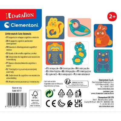 Les mini puzzles pour les tout-petits sont composés de deux ou trois pièces à positionner à l’intérieur d’un cadre. Ce jeu contient 6 puzzles qui représentent différents animaux. Les images simples réalisées par des artistes ont été pensées pour stimuler les plus petits avec des couleurs originales et des expressions douces et sympathiques. Les mini puzzles sont conçus pour stimuler les capacités manuelles et la perception visuelle des enfants dès l’âge de 2 ans.
