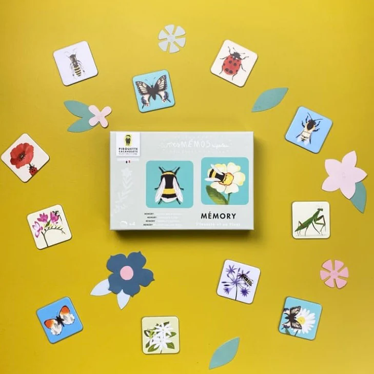 Pirouette Cacahouète présente » mes Mémos rigolos, l’Insecte et sa Fleur » Découvre des insectes et des fleurs en rassemblant les bonnes paires !Une chasse aux images éducative qui développe la mémoire et le sens de l’observation. 40 cartes + 1 imagier