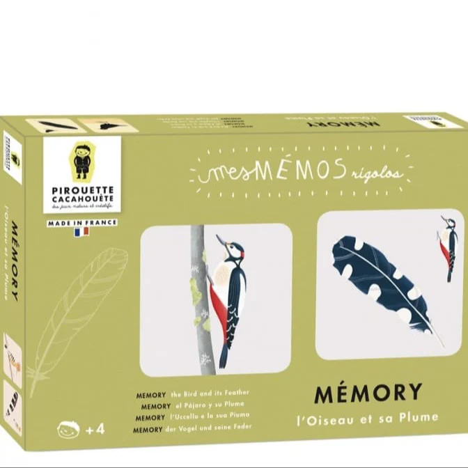 Pirouette Cacahouète présente » mes Mémos rigolos, l’Oiseau et sa plume » ! Apprends à reconnaître les plumes des oiseaux en rassemblant les bonnes paires !Une chasse aux images éducative qui développe la mémoire et le sens de l’observation. 40 cartes + 1 imagier