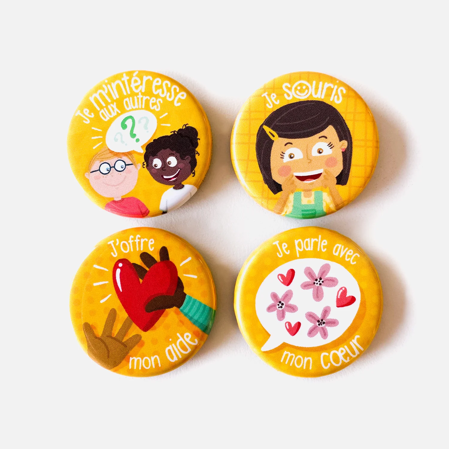Les 4 aimants Mes défis de bienveillance ont été pensés dans le but d’ouvrir ton mini aux autres. On le sait, c’est pas toujours facile de se mettre à la place des autres ni d’apporter son aide. Alors on s’est dit qu’avec ce kit, on pourrait aider nos minis à faire le bien autour d’eux!