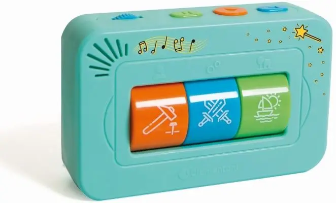 Chaque combinaison révèle une histoire différente et un univers de contes à explorer en choisissant à chaque fois le personnage, le lieu et le thème. Un conteur interactif pour créer et écouter 64 histoires, dont les éléments peuvent être combinés différemment à chaque fois. L’enfant peut tourner les 3 rouleaux pour décider du décor et du héros puis créer son conte en choisissant ce qui doit se produire. Un jeu idéal pour stimuler l’imagination, les capacités d’écoute et l’attention des jeunes enfants.