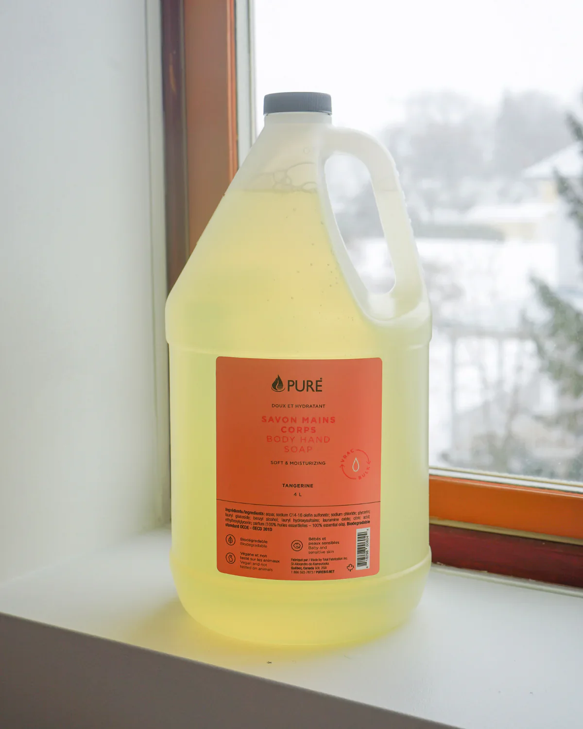 Nous offrons une version hypoallergène, le sans parfum. Tu peux aussi choisir l’un des 4 arômes : fleur d’amandier, thé vert, lavande et tangerine. Le format de 1L, est pratique pour faciliter tes habitudes de remplissage en vrac . Savais-tu que le vrac fait économiser jusqu’à 25% chaque fois que tu fais du vrac.