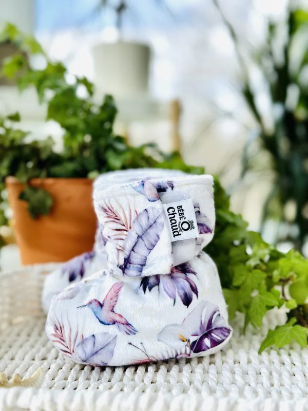 À partir de la grandeur 6-9 mois, les pantoufles Bébé Ô Chaud sont munies d’une semelle souple en suède synthétique.