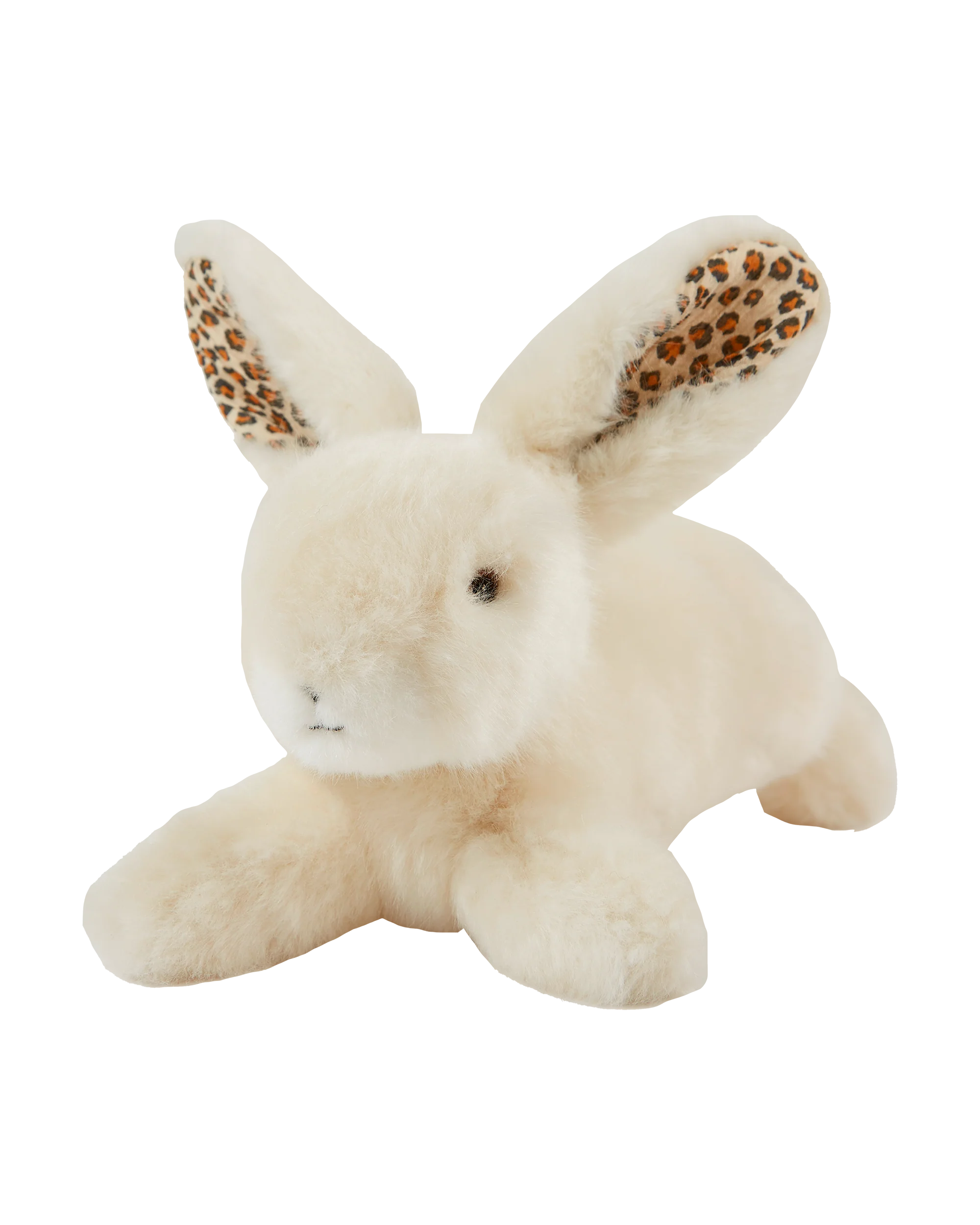 Lapin tout doux aux oreilles léopard, 25 cm.