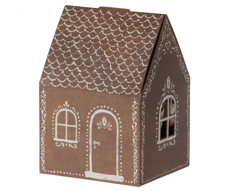 Grand frère souris Maileg, vêtu des habits classiques du Père Noël. Il vit dans une petite maison et possède un sac pour les cadeaux à livrer la nuit de Noël. Parfaitement adapté à la maison Gingerbread House de Maileg, il peut se glisser par la cheminée.