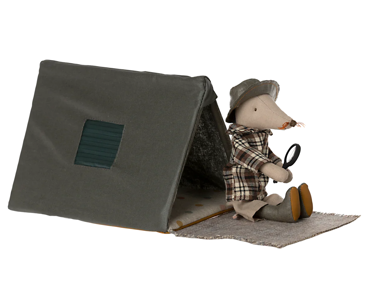 Emmène ta souris pour une soirée sous les étoiles dans la tente pliable. La couverture gardera votre ami au chaud pendant la nuit. Le tissu extérieur a une surface enduite pour un aspect plus authentique. Height: 12cm, Width: 12cm, Depth: 17cm, Net weight: 0.05kg vendu sans souris