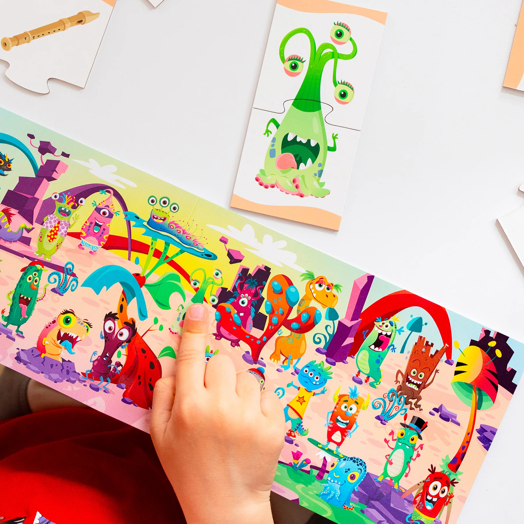 Chaque jeu comprend 2 ensembles de 26 morceaux ainsi qu’une planche de jeu. Après avoir assemblé les bons morceaux de casse-tête, le joueur découvre une créature qu’il doit ensuite rechercher sur la planche de jeu à la manière d’un jeu de cherche et trouve.