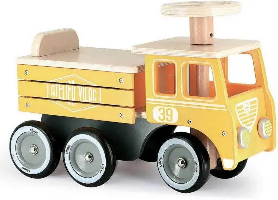 C’est parti pour une balade sur ce joli porteur camion de chantier en bois de la marque Vilac ! Ce porteur en bois est idéal pour développer la motricité et l’équilibre de l’enfant à partir de 18 mois. Le petit coffre de rangement situé sous l’assise lui permettra d’emmener ses jouets et son doudou partout avec lui pour partager de beaux moments de rigolade ! Avec ses roues silencieuses et sa parfaite stabilité, les enfants peuvent se déplacer en toute sécurité. Hauteur de l’assise : 22 cm.