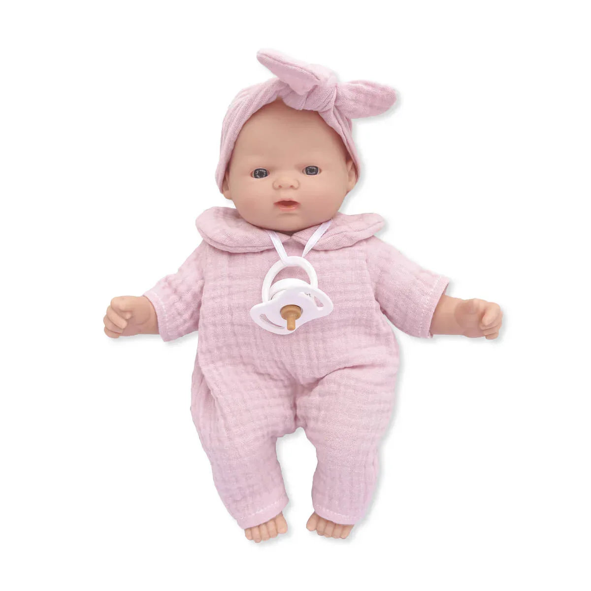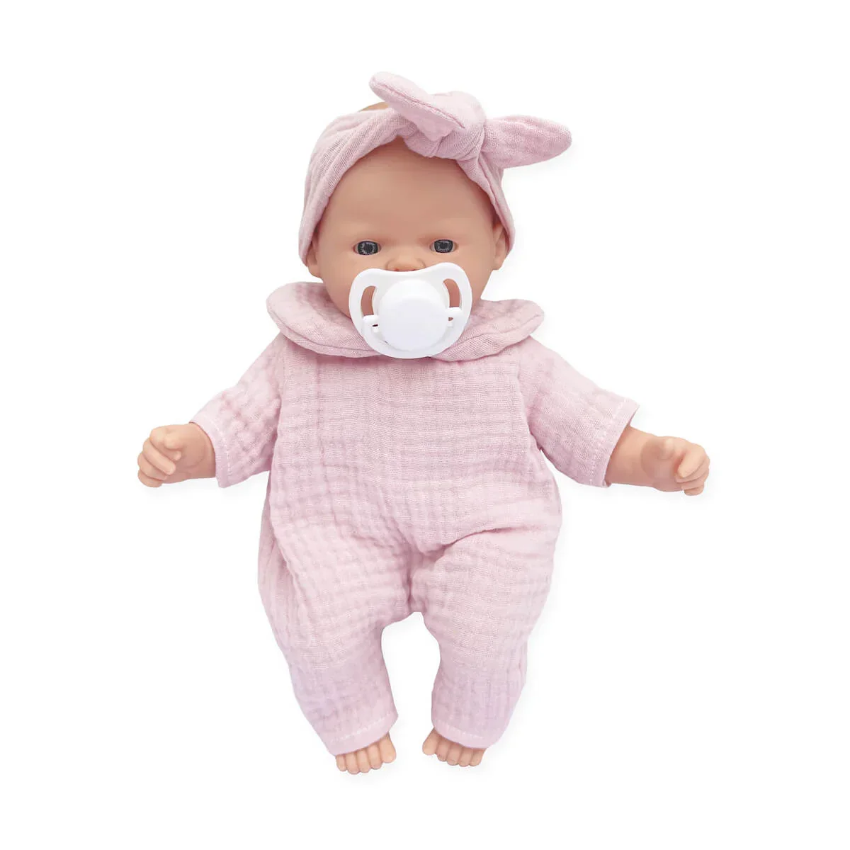 Avec sa jolie combinaison et son bandeau assorti en gaze de coton bio, la poupée Nina fera le bonheur de votre enfant et lui offrira de longues heures de jeux.