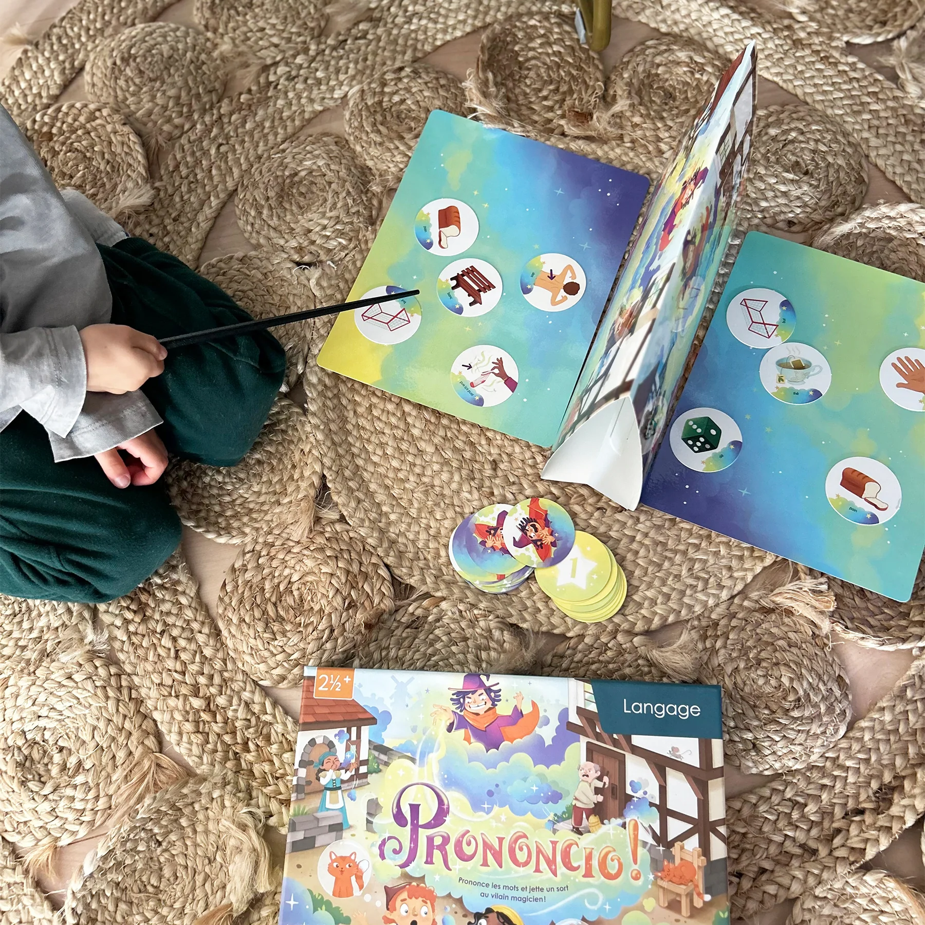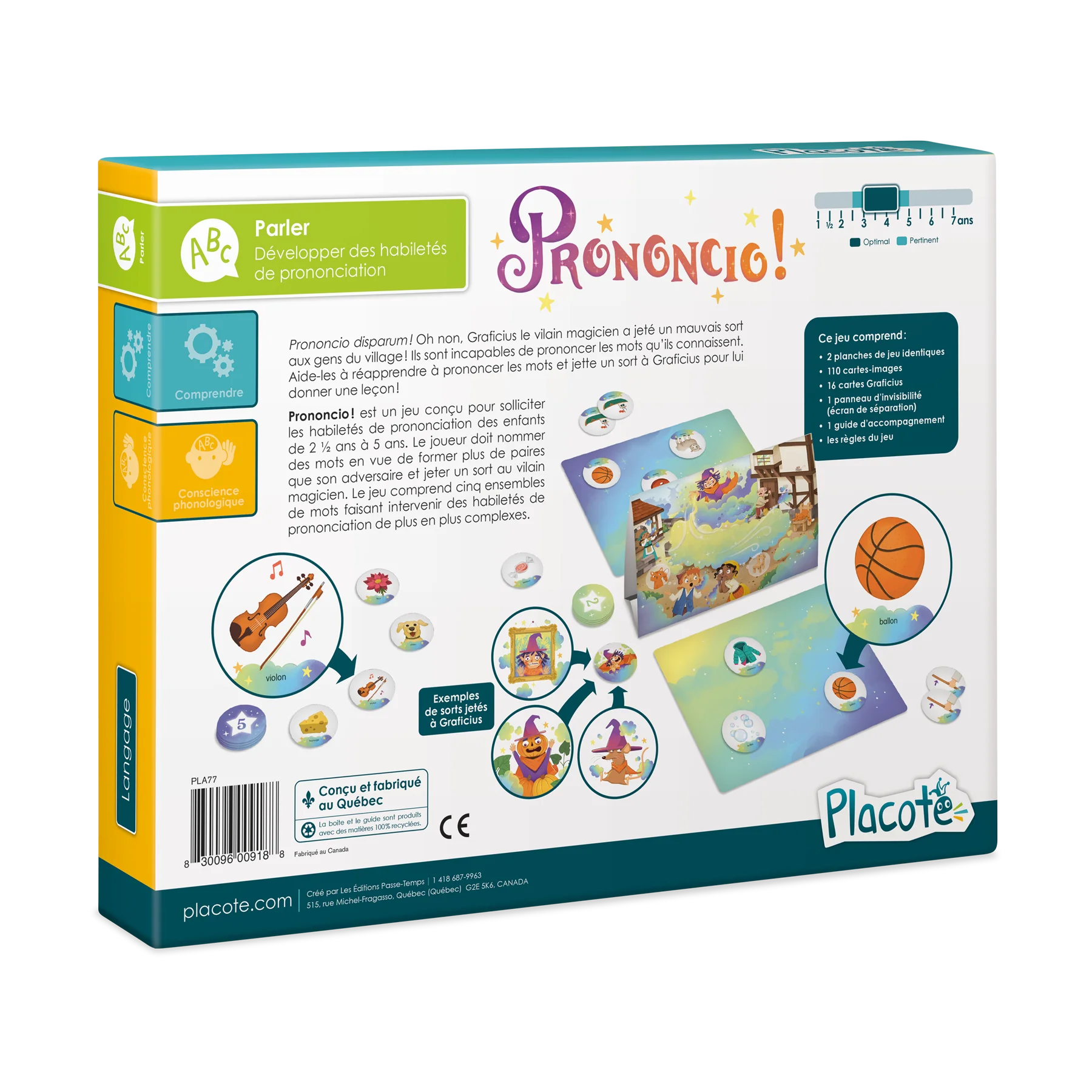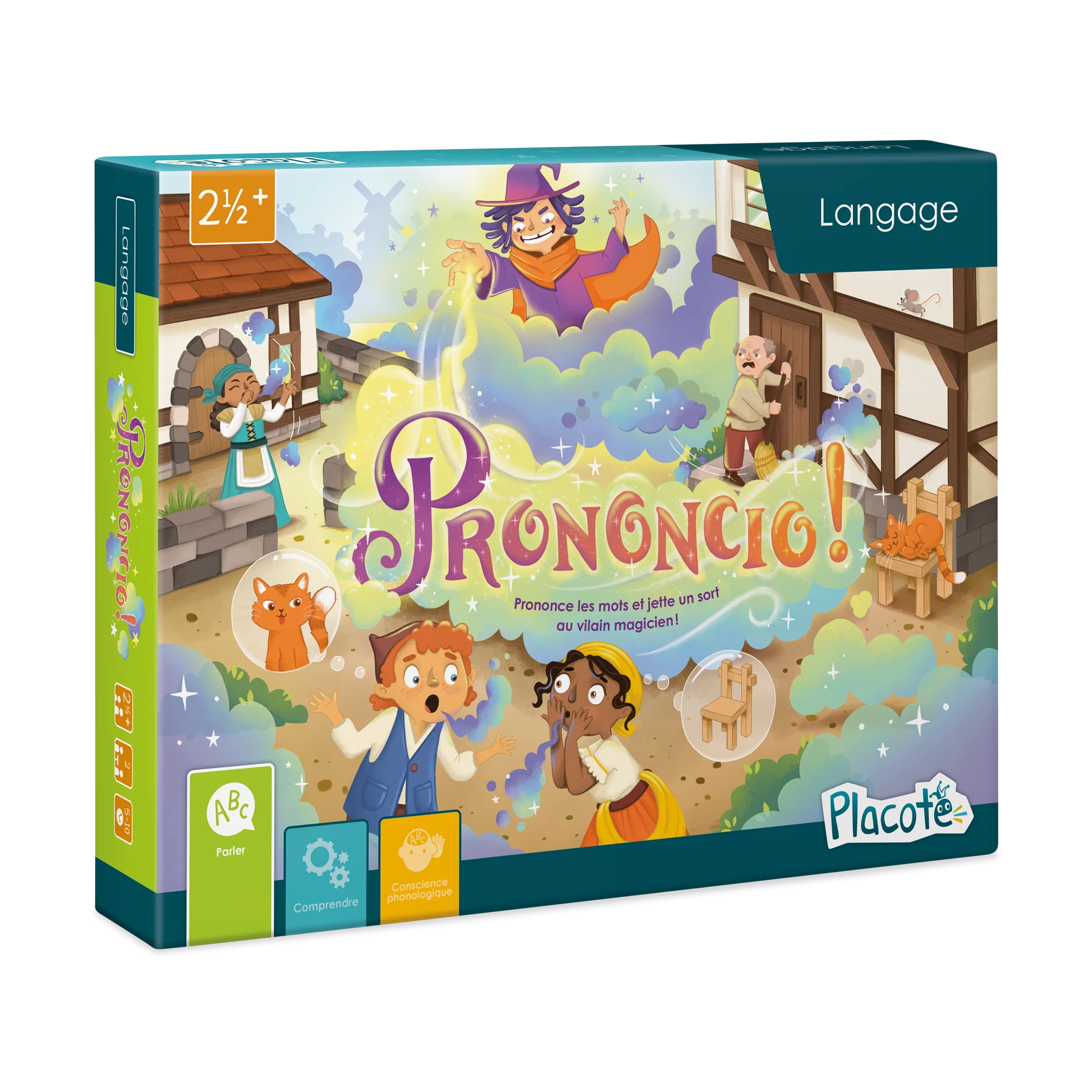 Prononcio! est un jeu conçu pour solliciter les habiletés de prononciation des enfants de 2½ ans à 5 ans. Le joueur doit nommer des mots en vue de former plus de paires que son adversaire et jeter un sort au vilain magicien. Le jeu comprend cinq ensembles de mots faisant intervenir des habiletés de prononciation de plus en plus complexes.