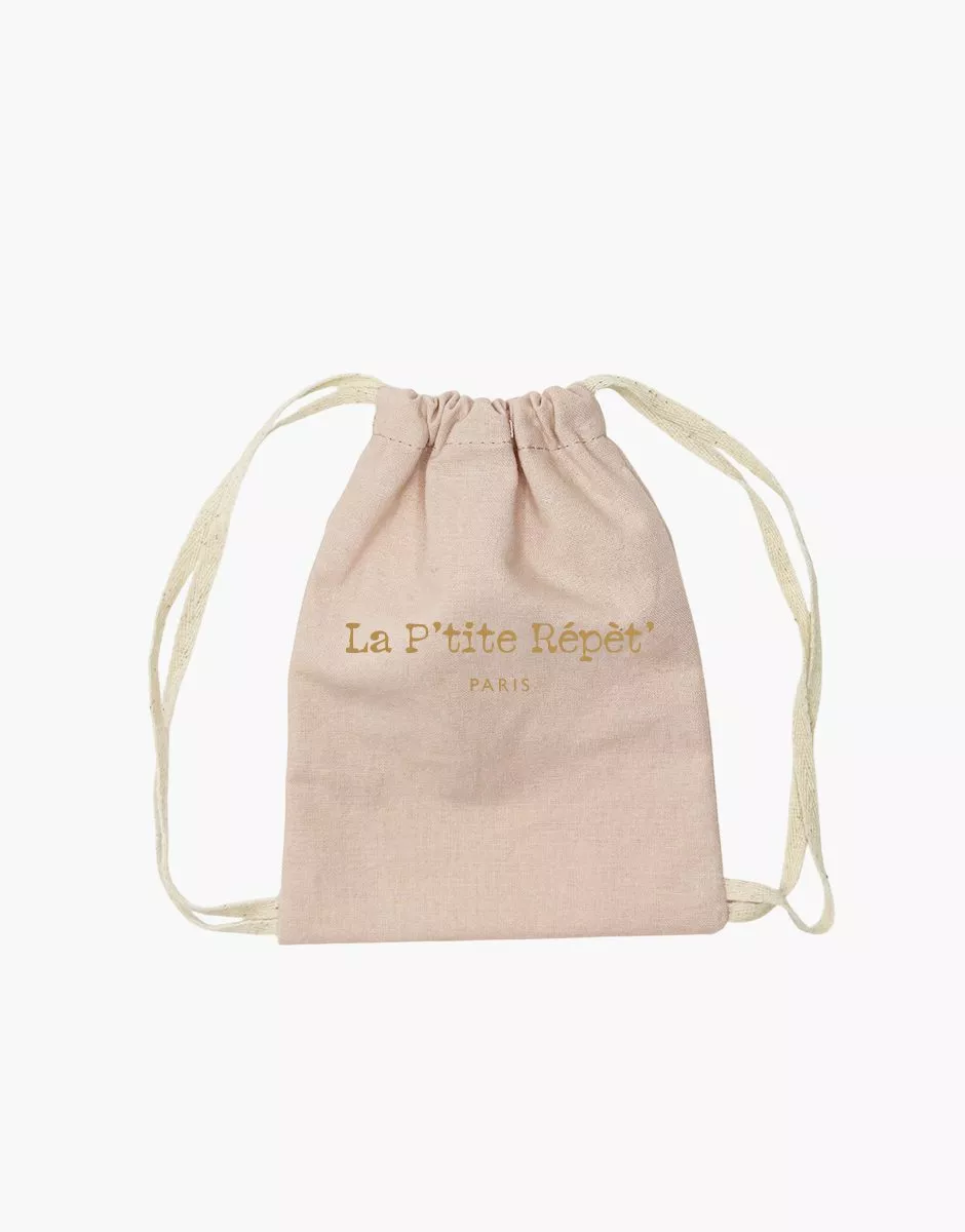 Accessoire sac de danse en coton sérigraphié « La P’tite Répèt’ » pour poupées Minikane Gordis 34 & 37cm. Design, développement & confection MADE IN FRANCE.Design, development & tailoring made in France.