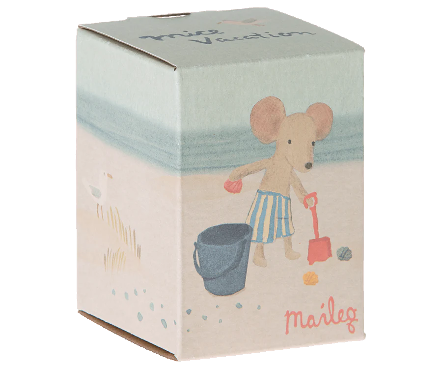 Le temps des vacances. L’ensemble de jeu parfait pour la plage. Un seau, une pelle et un jouet de sable miniature sont inclus.