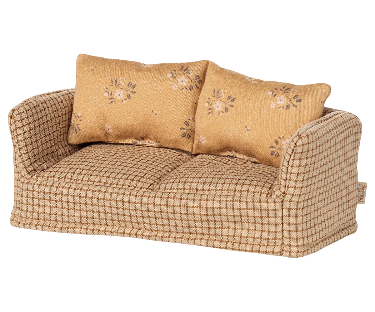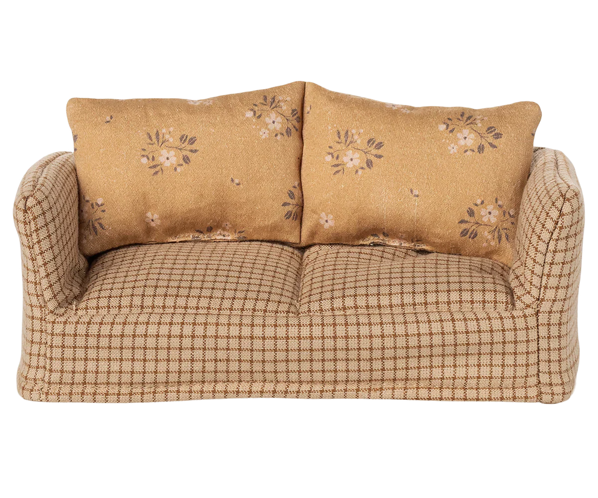 Toutes les familles ont besoin d’un canapé confortable pour se reposer. La famille souris peut s’y installer pour un agréable moment. Il s’intègre parfaitement à leur maison Farmhouse; avec une table basse en bois pour compléter la décoration.