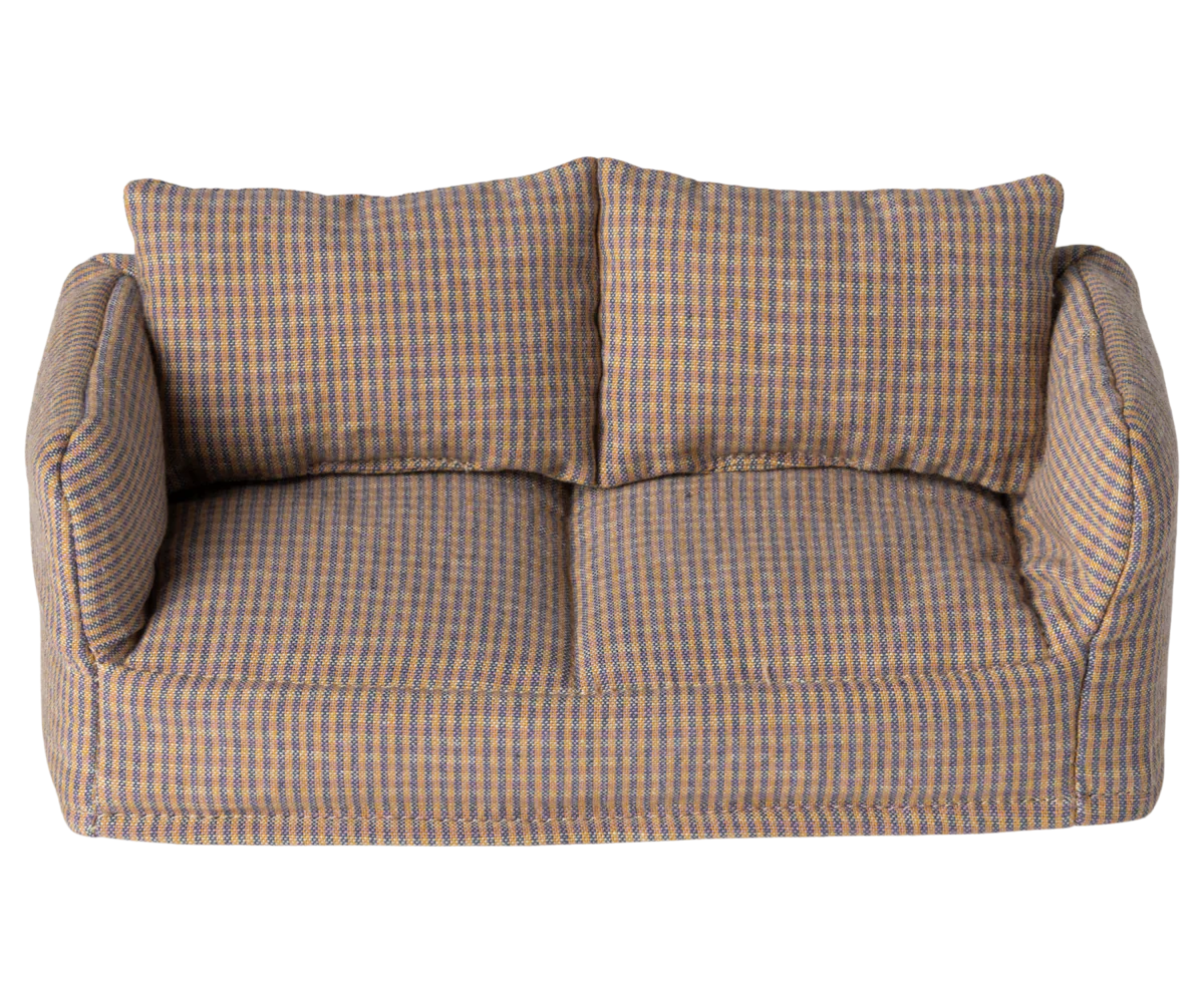 Toutes les familles ont besoin d’un canapé confortable pour se reposer. La famille souris peut s’y installer et passer un agréable moment. Il s’intègre parfaitement dans le salon de leur maison Farmhouse. Height: 7,5cm, Width: 17cm, Depth: 8cm