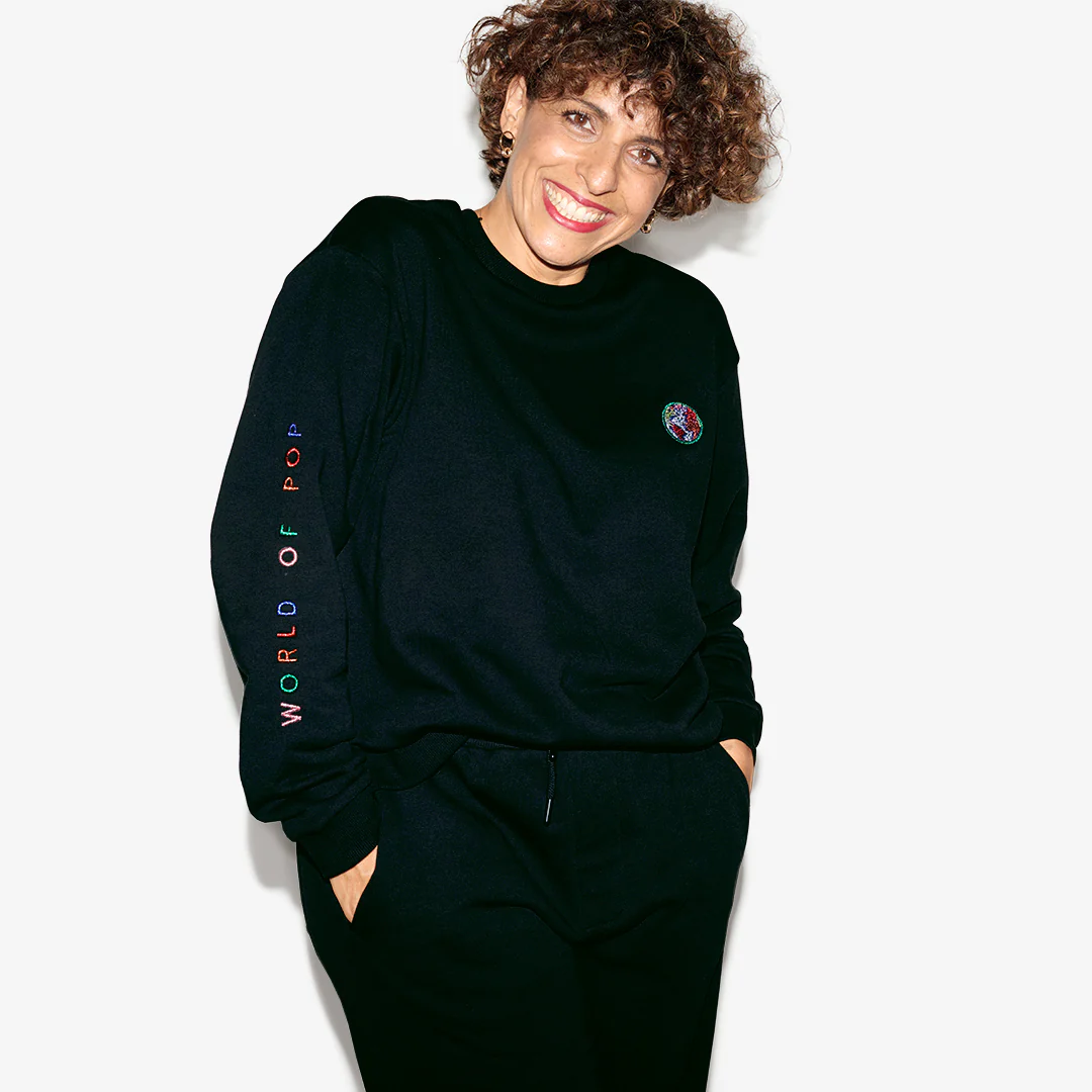 - « World Of Pop » brodé sur la manche (en lurex pour le coloris noir)
