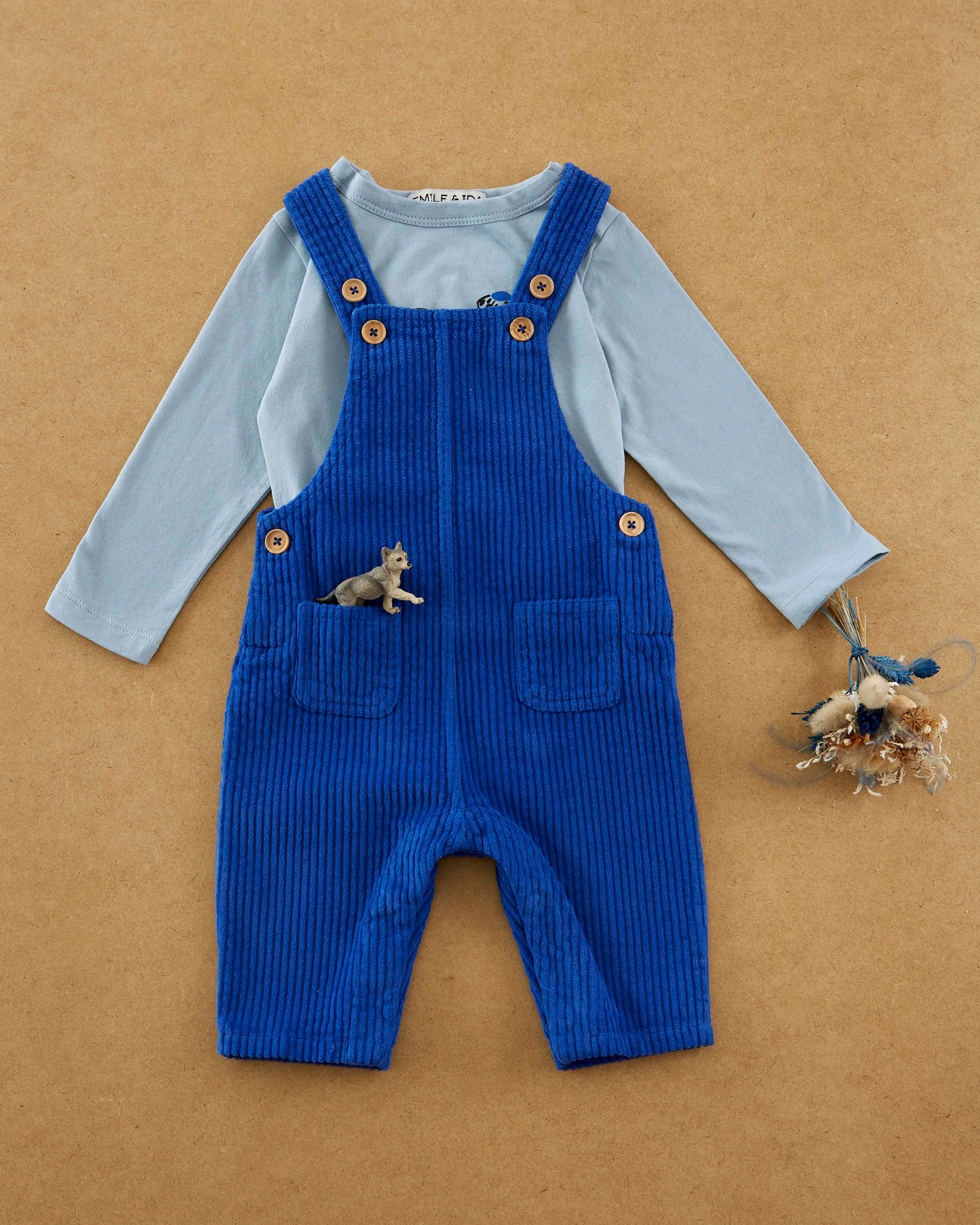 Tee-shirt en jersey de coton biologique bleu ciel avec un dalmatien botté et chapeauté imprimé sur la poitrine. – Coupe droite – Bord-côte autour de l’encolure – Manches longues ourlées aux poignets – Patte de boutonnage sur l’épaule pour les tailles bébé