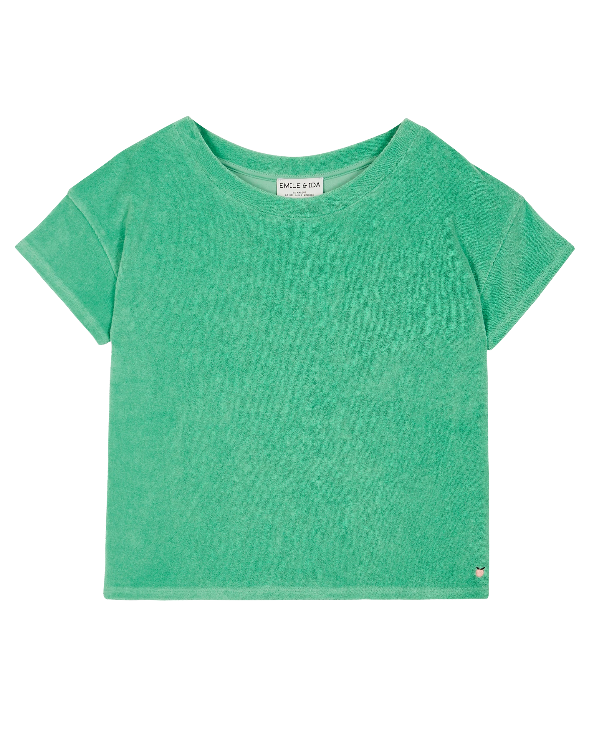 Tee-shirt en tissu éponge vert printemps. On aime le mélange de coton et de polyester tout doux, moelleux et confortable. Le polyester, ajouté au coton en toute petite quantité, confère au tissu une élasticité exceptionnelle et lui permet de ne pas se froisser. Vert printemps. Une couleur à laquelle Emile et Ida ne nous a […]