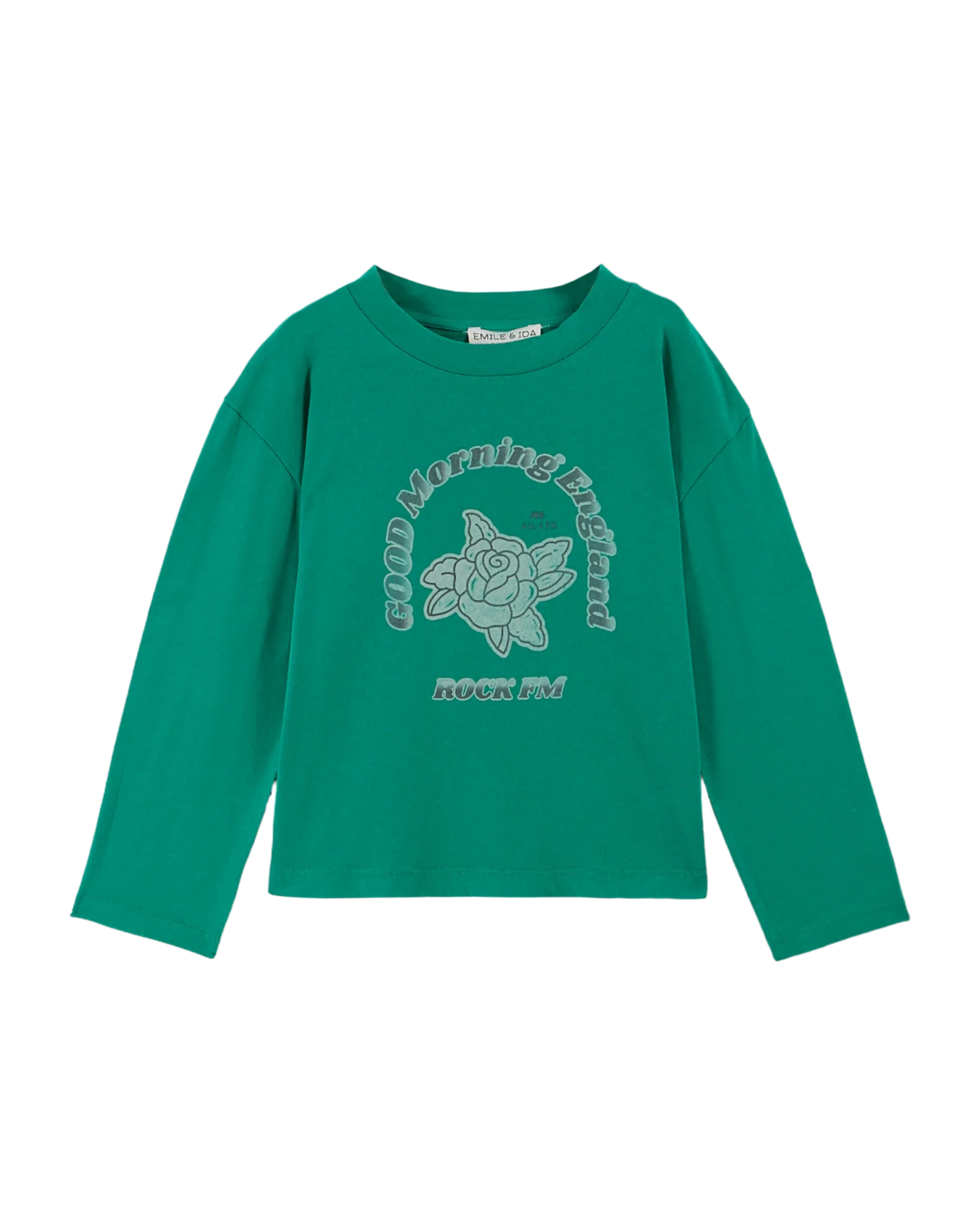 Encore un tee-shirt qui ressemble à tous les tee-shirts de chez Emile et Ida. La matière toute douce, les manches longues terminées par une double surpiqure (comme la base) et l’encolure ceinte d’un bord-côte ton sur ton. Ce qui le différencie des autres et que vous ne trouverez pas ailleurs… c’est le print « Good Morning England » qui incitera vos fils à se sentir libre.